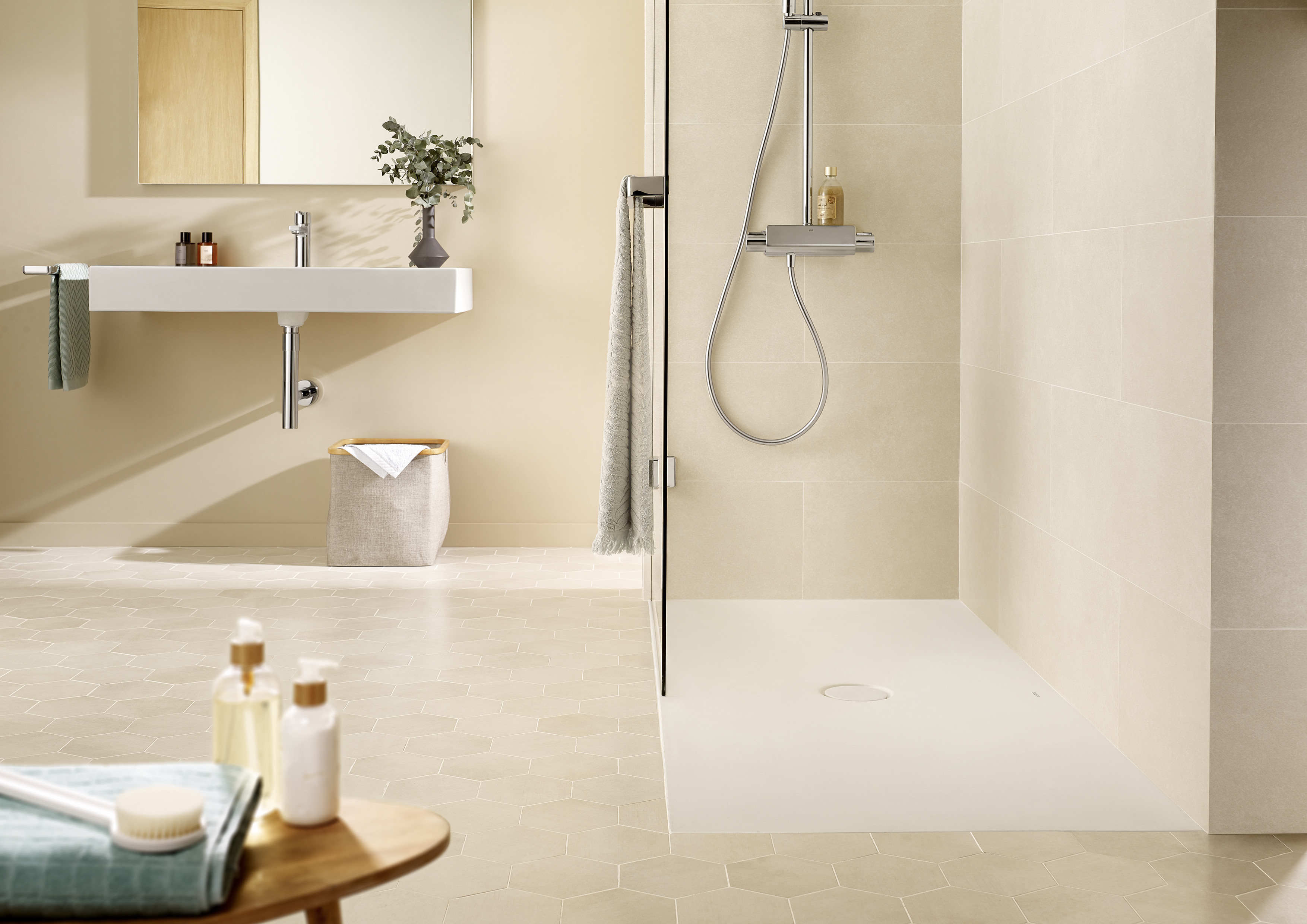 Roca na veľtrhu taktiež predstaví novú generáciu sprchových vaničiek založenú na priekopníckej technológií Senceramic® - inovatívnom materiáli, ktorý kombinuje bezkonkurenčné sanitárne a hygienické výhody skleného porcelánu s novou protišmykovou štruktúrou a extra tenkým dizajnom. Materiál je vysoko odolný voči opotrebeniu a taktiež sa vďaka nízkej poréznosti veľmi jednoducho udržuje. Tieto sprchové vaničky sú dostupné v širokej škále farieb a veľkostiach až do 1,8 m.
