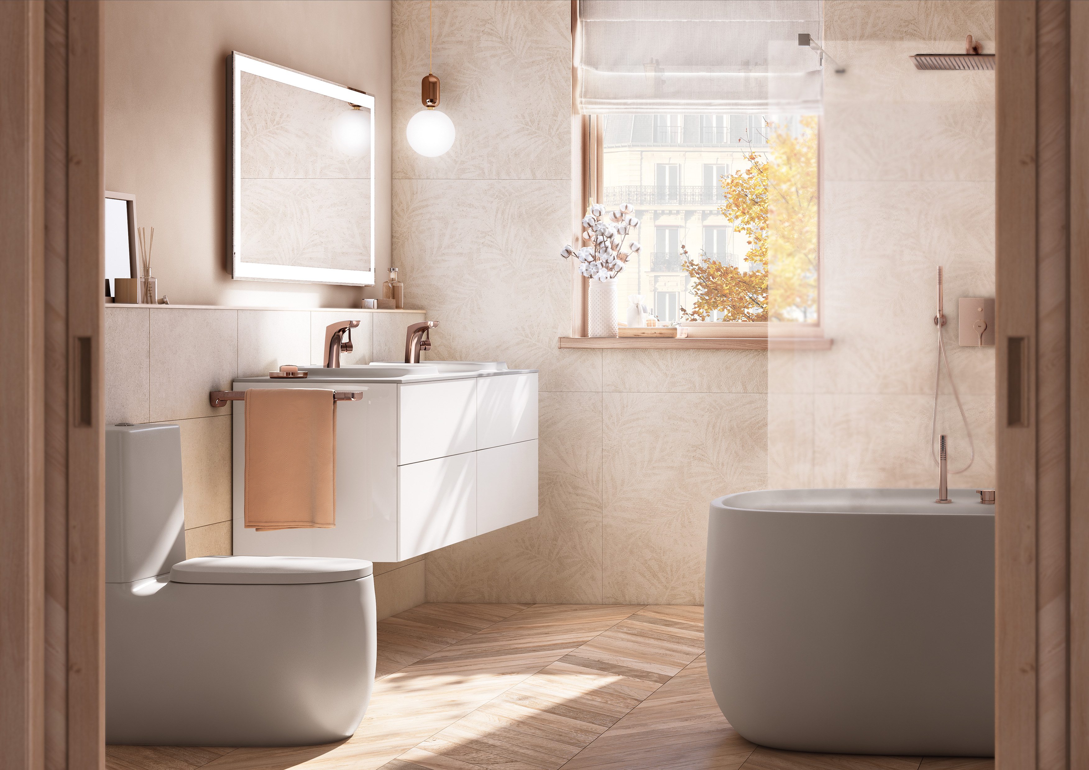 Farby sú kľúčovým atribútom, na ktorý Roca v nasledujúcej sezóne vsádza. Na ISH preto predstavila nové farebné škály produktov. „Zákazníci používajú farby k navrhnutiu kúpeľne podľa svojich osobností a spôsobu života,“ hovorí Velázquez. Podľa neho je prirodzené za pomoci výrobcov kúpeľňového príslušenstva vytvoriť farebné koncepty podľa individuálnych prianí zákazníkov. Elegantné povrchy kombinujú rafinované sklené odlesky béžovej, kávovej, perlovej a ónyxovej farby s povrchom Everlux kúpeľňových batérií, ktoré sú dostupné vo farbách Titanium Black, Rose Gold alebo Brushed Platinum, aby vyhovovali aj náročným zákazníkom.