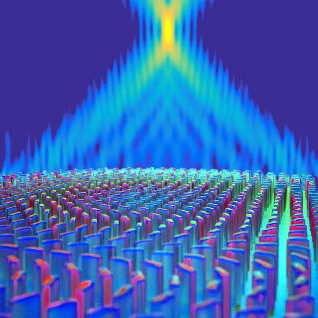 Každý konkrétny vzor sa zameriava na svetlo inej farby. V podstate teda robí to isté ako sklená šošovka, ibaže bez skla. Na vytvorenie presných vzorov sú potrebné zložité počítačové kalkulácie, aby sa replikoval zaostrovací efekt tradičného objektívu.