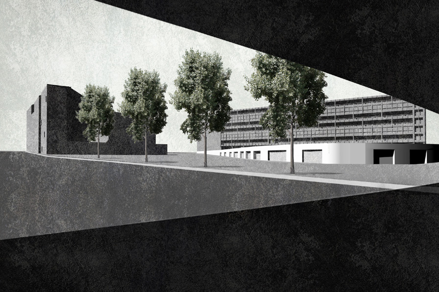Alicia Bruder a Laura Hildbrand se v rámci řešení pro parkovací dům u Státní opery nechali inspirovat citací zakladatelů architektonického studia Lacaton & Vasal „Nikdy nebourejte, nikdy nepřesouvejte ani nenahrazujte, vždy doplňujte, proměňujte a opět využívejte“, která se stala motem pro návrh výstavního sálu, který využívá strukturu existujícího parkovacího domu a tak doplňuje sekvenci kulturních staveb. Jejich dostavba se stává obalem existující generické architektury.