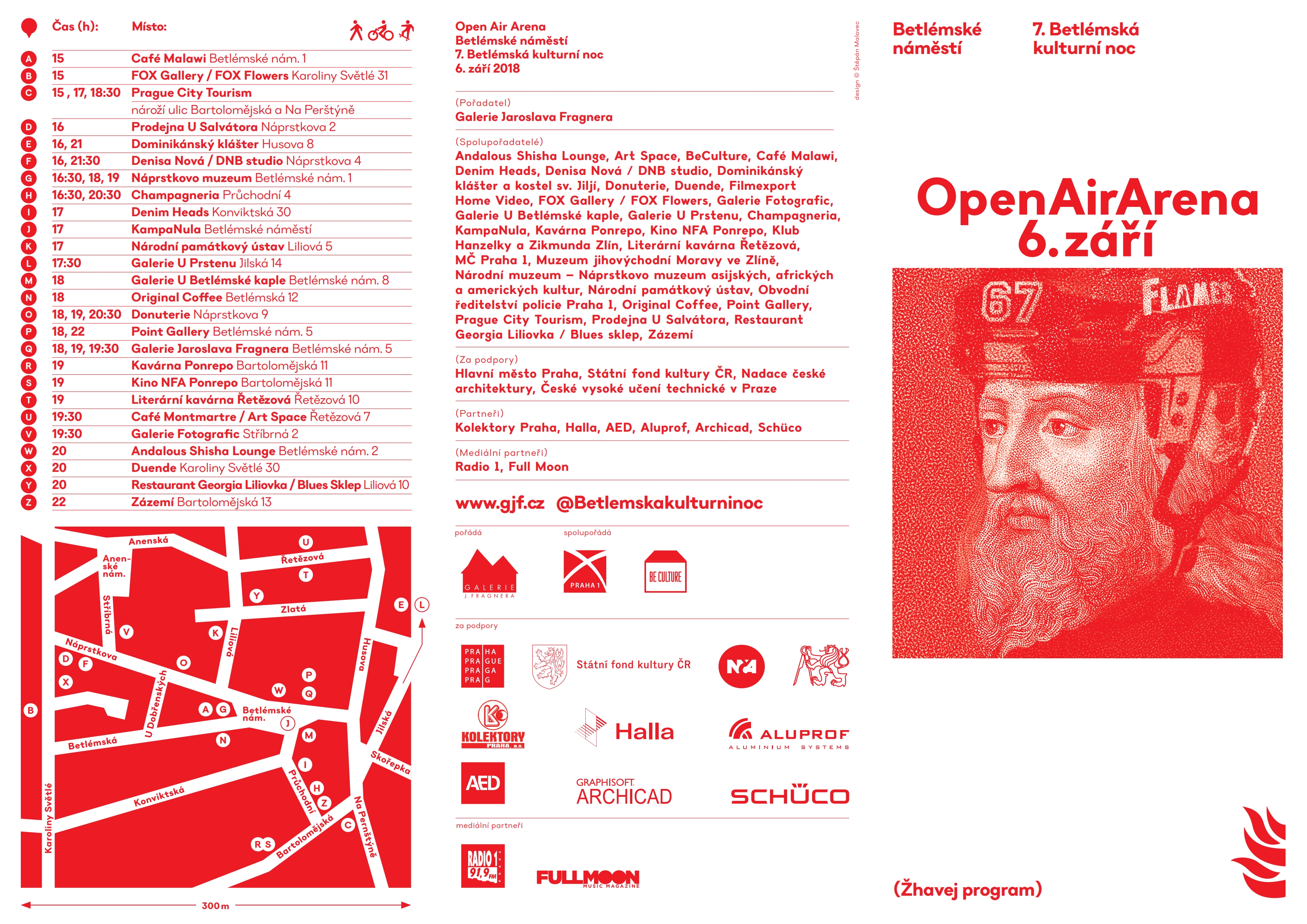 Ve čtvrtek 6. září se vypravte na Betlémské náměstí a přilehlých ulic a dvorků. Dvě desítky místních institucí připravily bohatý program pod širým nebem i v jindy nepřístupných prostorech, který potrvá od odpoledních hodin až do půlnoci. Těšit se můžete na vernisáže, koncerty, autorská čtení, gastronomické zážitky, prohlídky i program pro děti.