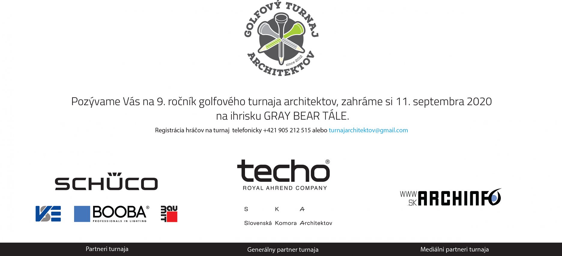 Dovoľujeme si Vám oznámiť radostnú správu, aj napriek zlej pandemickej a ekonomickej situácii sa 9. ročník športovo spoločenského podujatia Golfový Turnaj Architektov 2020 uskutoční!!! Zároveň veľké ĎAKUJEM sponzorom, ktorí túto myšlienku stále podporujú.
