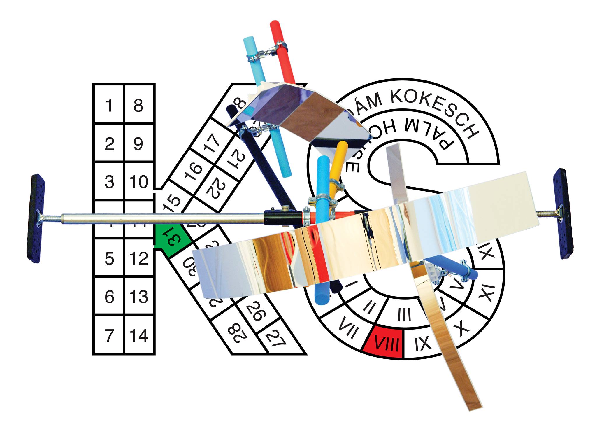 Ádám Kokesch (1973, Budapešť) koncipuje komplexní instalace podle precizní, ale nespoutané vnitřní logiky, využívající recyklované materiály, každodenní high a low-tech objekty a geometricky zpracované povrchy. Jeho práce se vyznačuje permanentní intelektuální konfrontací s různými uměleckými styly a produktivním rozšiřováním tradice abstrakce. Kokesh experimentuje s kombinací přesné, zdánlivě high-technologie a technické implementace a brikoláže estetiky dysfunkčních hybridních objektů.