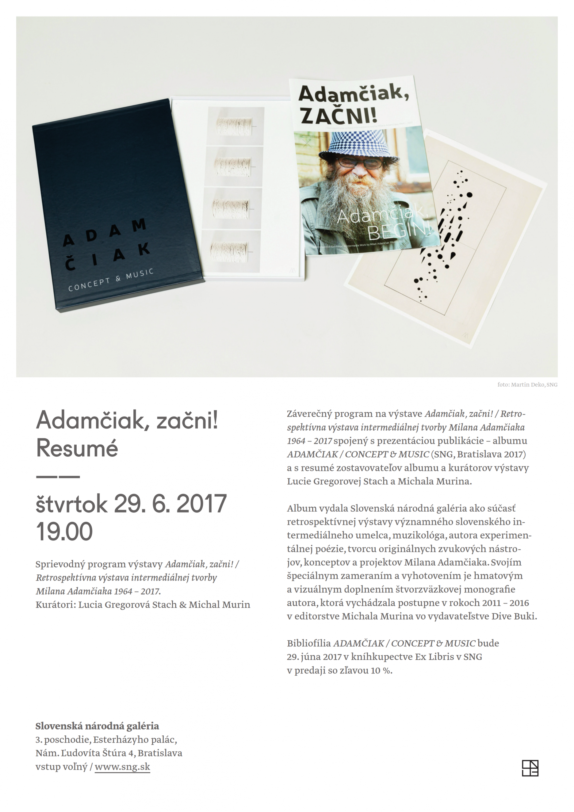 Bibliofília ADAMČIAK / CONCEPT & MUSIC bude pri tejto príležitosti dňa 29. júna 2017 v kníhkupectve Ex Libris v SNG v predaji so zľavou 10 %.