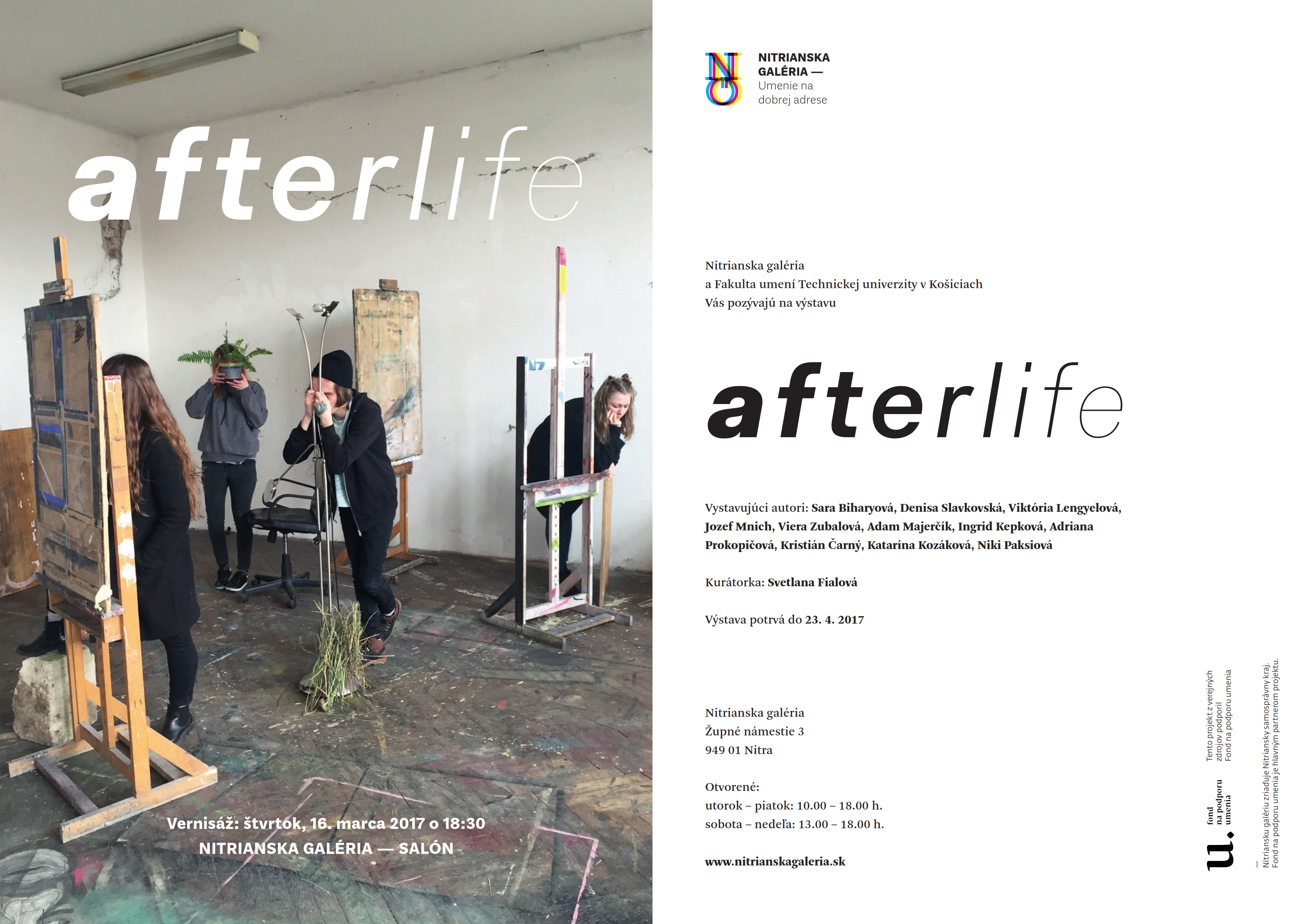 Názov Afterlife odkazuje k životu ‘po’, umeleckej praxi, ktorá študentov čaká po ukončení štúdia. Vďaka výzve Nitrianskej galérie majú možnosť vstúpiť na pôdu inštitúcie mimo školského priestoru a zrealizovať, prípadne reinštalovať svoje semestrálne práce v novom kontexte. Ateliér grafiky a experimentálnej tvorby síce v názve nesie odkaz na tradičné médium, no práce z ostatných rokov sa nedajú vtesnať do označenia grafika alebo kresba. Prestupujú voľne medzi médiami, skúmajú technické a formálne možnosti 2D i 3D zobrazovania, reagujú na aktuálne tendencie vo svete a formulujú vlastnú generačnú výpoveď ovplyvnenú sub- a pop-kultúrnymi impulzami, cynickosťou, kolážovitosťou myslenia.