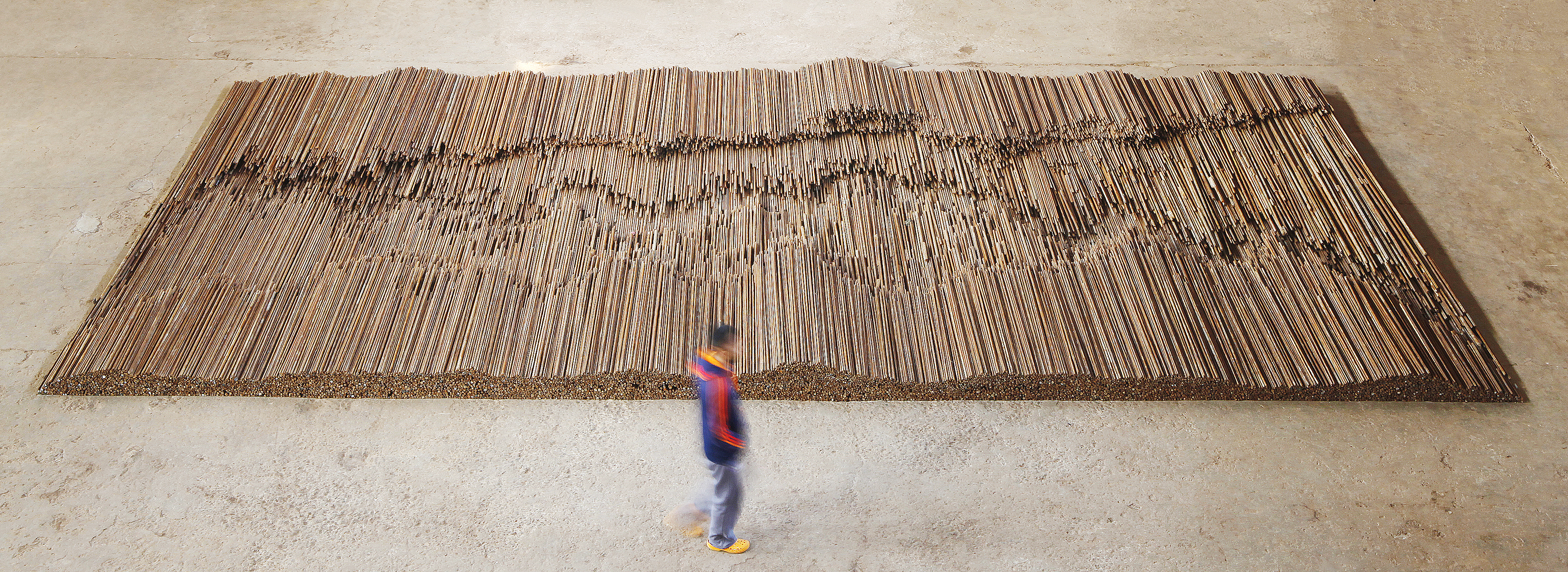 Nosné dielo výstavy v Royal Academy of Arts s názvom Straight (2008-2012). Má silný obsah i váhu (symbolickú aj doslovnú, váži 90 ton). Dielo je zostavené zo stavebných oceľových armatúr, ktoré sú zbytkami z trosiek ničivého zemetrasenia v čínskej provincii Sečuán v roku 2008. Objekt v tvare seizmickej vlny je kritikou korupcie a nevhodného šetrenia pri výstavbe verejných stavieb, ktoré viedlo k mnohým zbytočným obetiam na ľudských životoch. Prikladáme obrázok a video, ktoré môžu trochu priblížiť podobu diela: