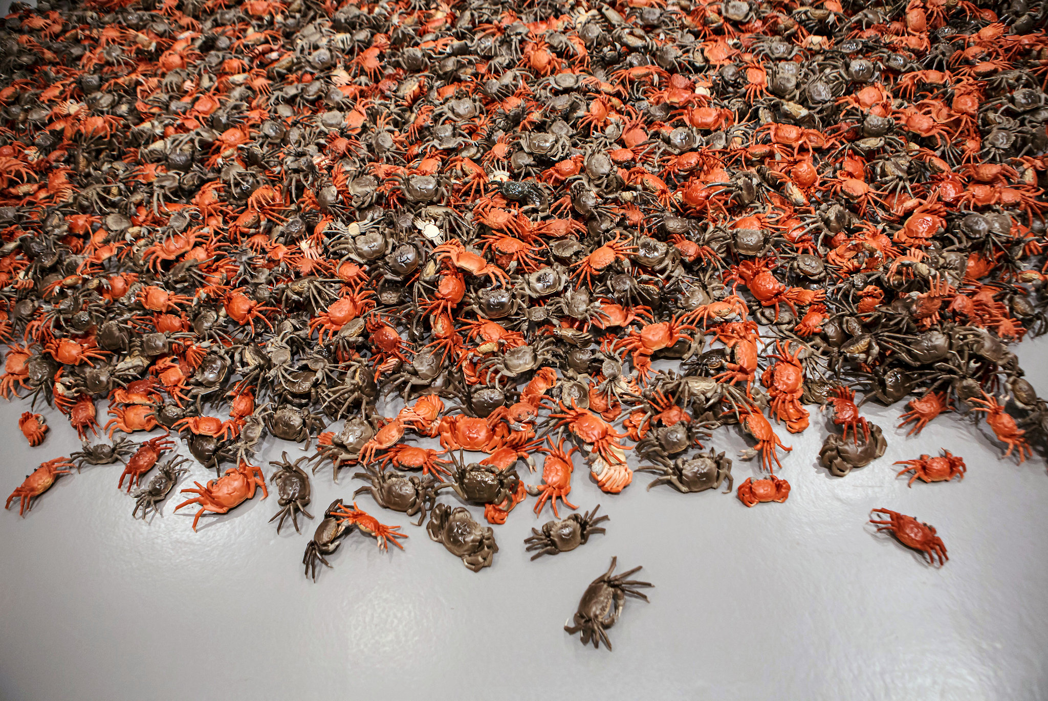He Xie (2011) - porcelánové kraby (3 000 ks, každý cca 5x25x10cm), z inštalácie v Royal Academy of Arts