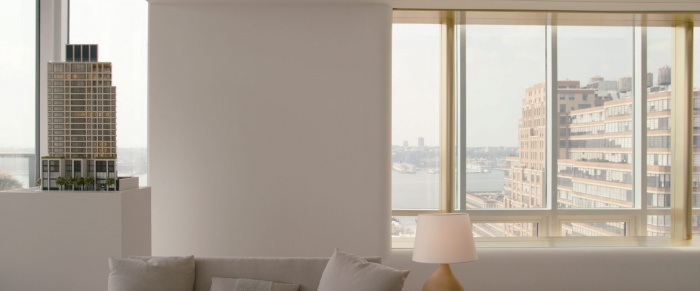 Quarry (2015, HD Video, 34 minutes) follows the journey of Vermont-quarried marble—a material symbol of wealth and luxury—from its origin to its final destination within luxury high-rise residencies built by developers across Manhattan. What we see in Quarry are, in fact, the 1:1 architectural models, life-size imitation spaces developers present to market these highly idealized, but very real, interiors of yet to be built buildings to prospective buyers.