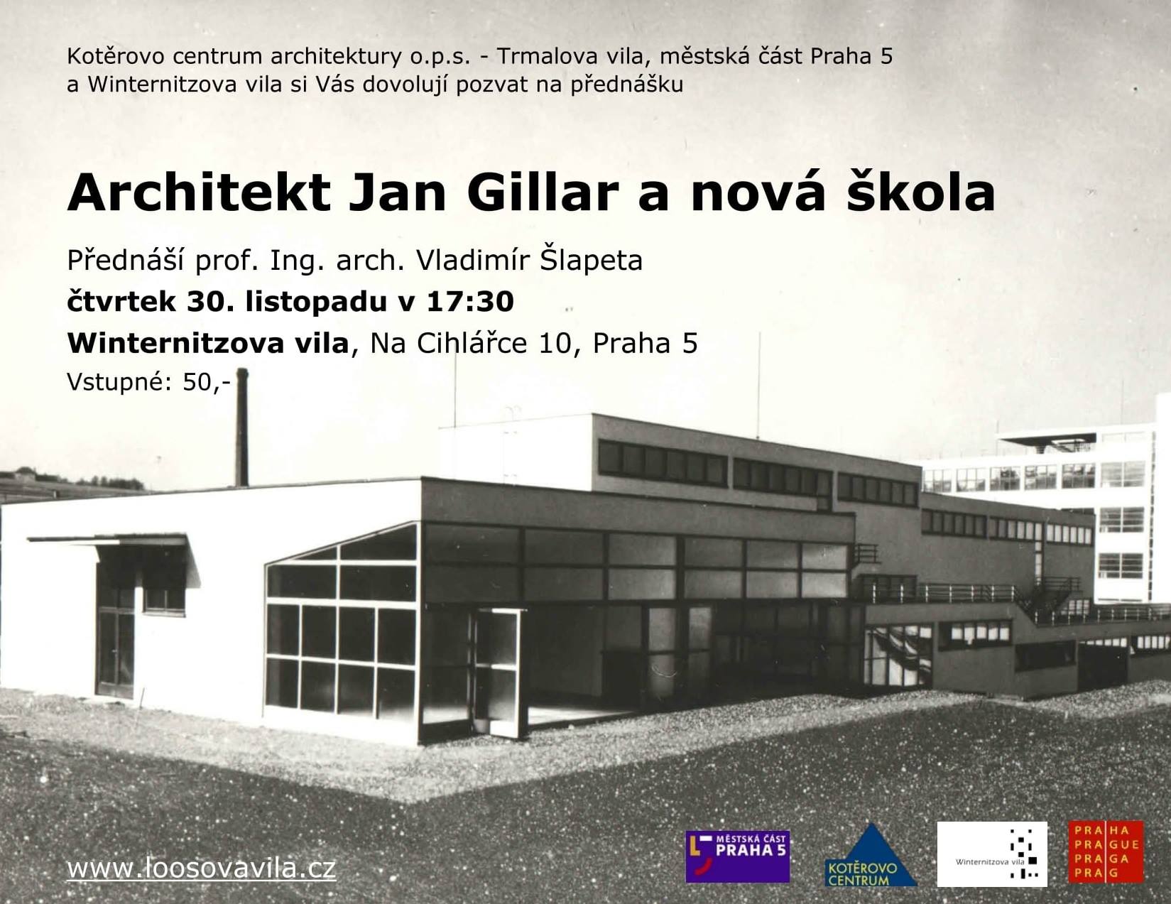 O absolventu Akademie výtvarných umění u Josefa Gočára Janu Gillarovi, reprezentatovi českého funkcionalismu, bude přednášet prof. Ing. arch. Vladimír Šlapeta ve čtvrtek 30. listopadu ve Winternitzově vile (Na Cihlářce 10, Praha 5). Všichni jste srdečně zváni.