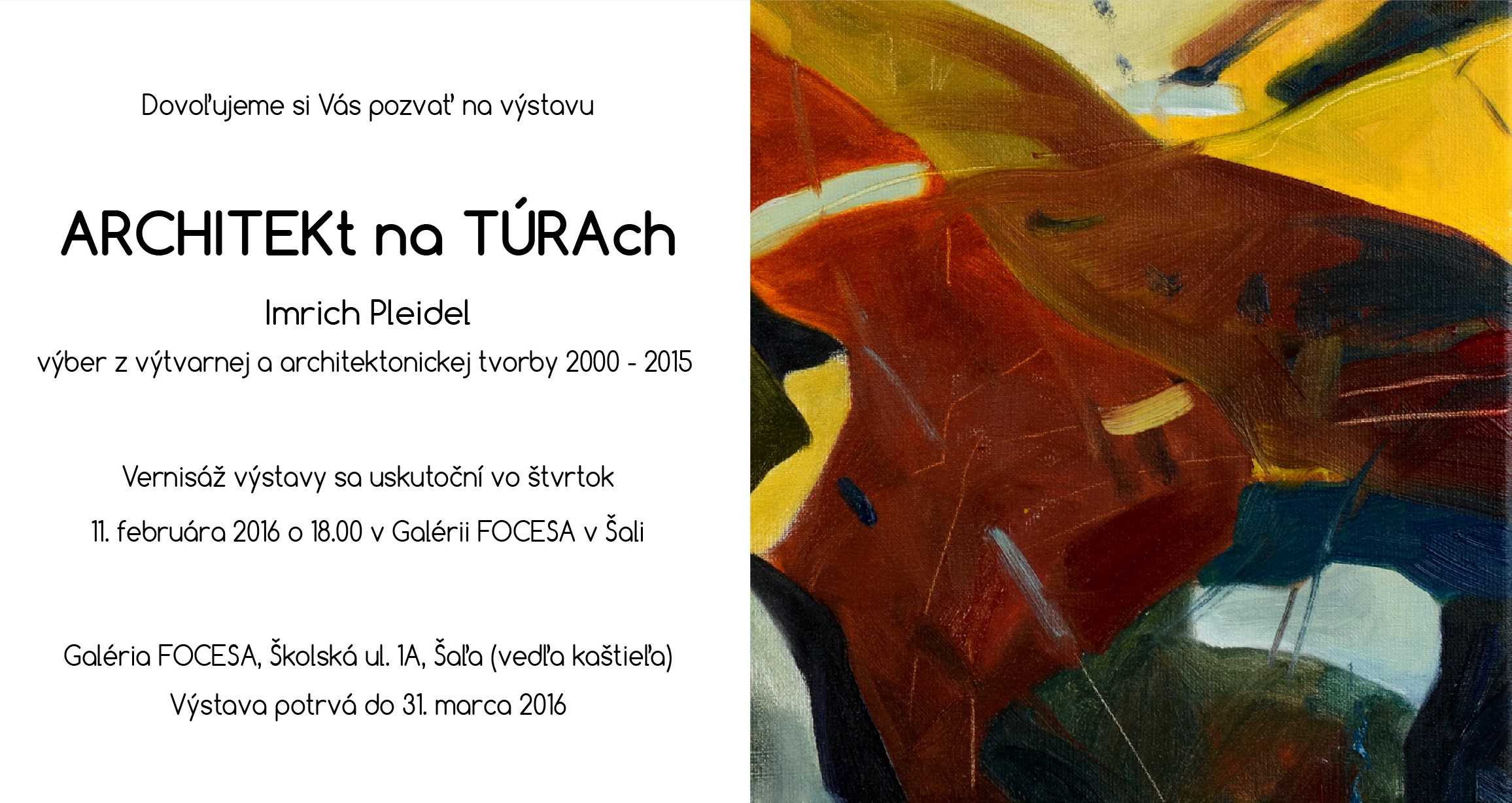 Dovoľujeme si Vás srdečne pozvať na výstavu. Vernisáž sa uskutoční vo štvrtok 11. februára 2016 o 18.00 hod. v Galérii FOCESA v Šali (Školská ul. 1A, vedľa kaštieľa). Výstava potrvá do 31. marca.