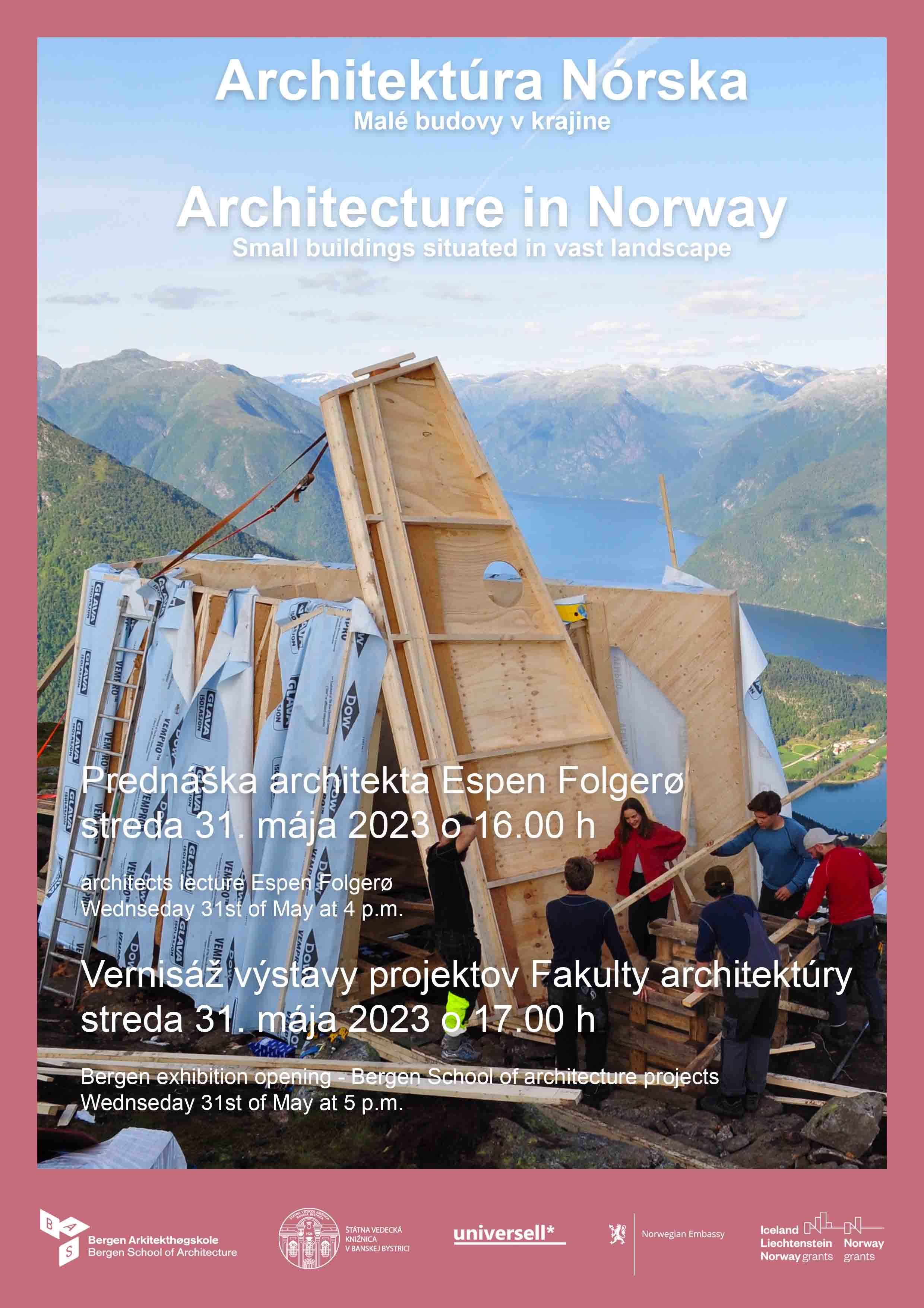 Škola architektúry v nórskom meste Bergen (Bergen Arkitekt Skole - BAS) sa zameriava na umelecko-technickú výučbu študentov v kontexte prírodného prostredia a krajiny. Integrálnu súčasť vyučovacieho procesu tvorí prax a testovanie architektonických návrhov v reálnych podmienkach a prostredí. Výstavný projekt Architektúra Nórska - Malé budovy v krajine je prezentáciou architektonických workshopov školy architektúry v Bergene a zároveň druhým projektom etablovanej akademickej platformy na Slovensku.