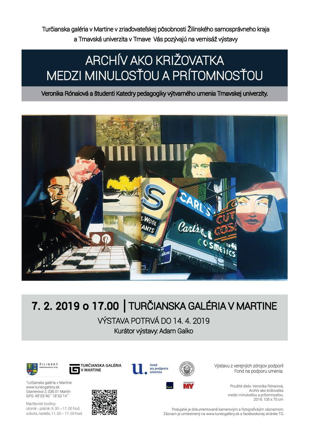 Vernisáž výstavy sa uskutoční 7. 2 .2019 o 17.00 hod. v Turčianskej galérii v Martine.