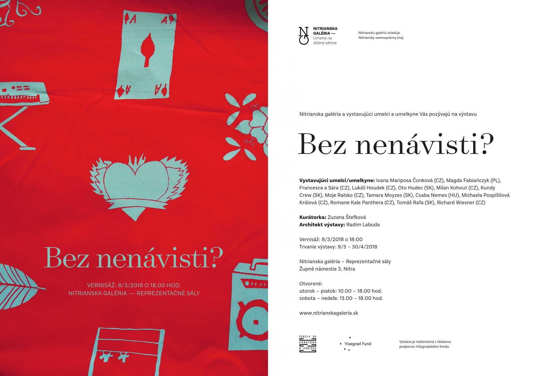 Medzinárodná výstava Bez nenávisti? tematizuje postavenie romskej menšiny v našej spoločnosti. Koncepcia výstavy vychádza z presvedčenia, že neutešené podmienky života Rómov sú dôsledkom systematického zlyhávania mechanizmov, ktoré by mali zaistiť dôstojné podmienky k životu všetkým ľuďom bez ohľadu na ich farbu pleti, či etnický pôvod.
