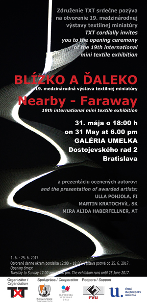 19. ročník medzinárodnej súťažnej prehliadky textilnej miniatúry je prehliadkou aktuálnej tvorby takmer 80 umelcov a študentov z 28 krajín celého sveta. Na otvorení 31. mája budú vyhlásení aj víťazi ročníka 2017. Tento sviatok súčasnej textilnej tvorby sprevádzajú dve ďalšie výstavy - výstava ocenených tvorcov z predchádzajúceho ročníka - Fínka Ulla Pohjola, Rakúšanka Mira Alida Haberfellner a Slovák Martin Kratochvíl. Druhá výstava Hands On prináša pohľad na umeleckú aj pedagogickú činnosť slovenského umelca Jozefa Bajusa na americkej škole Buffalo State College.