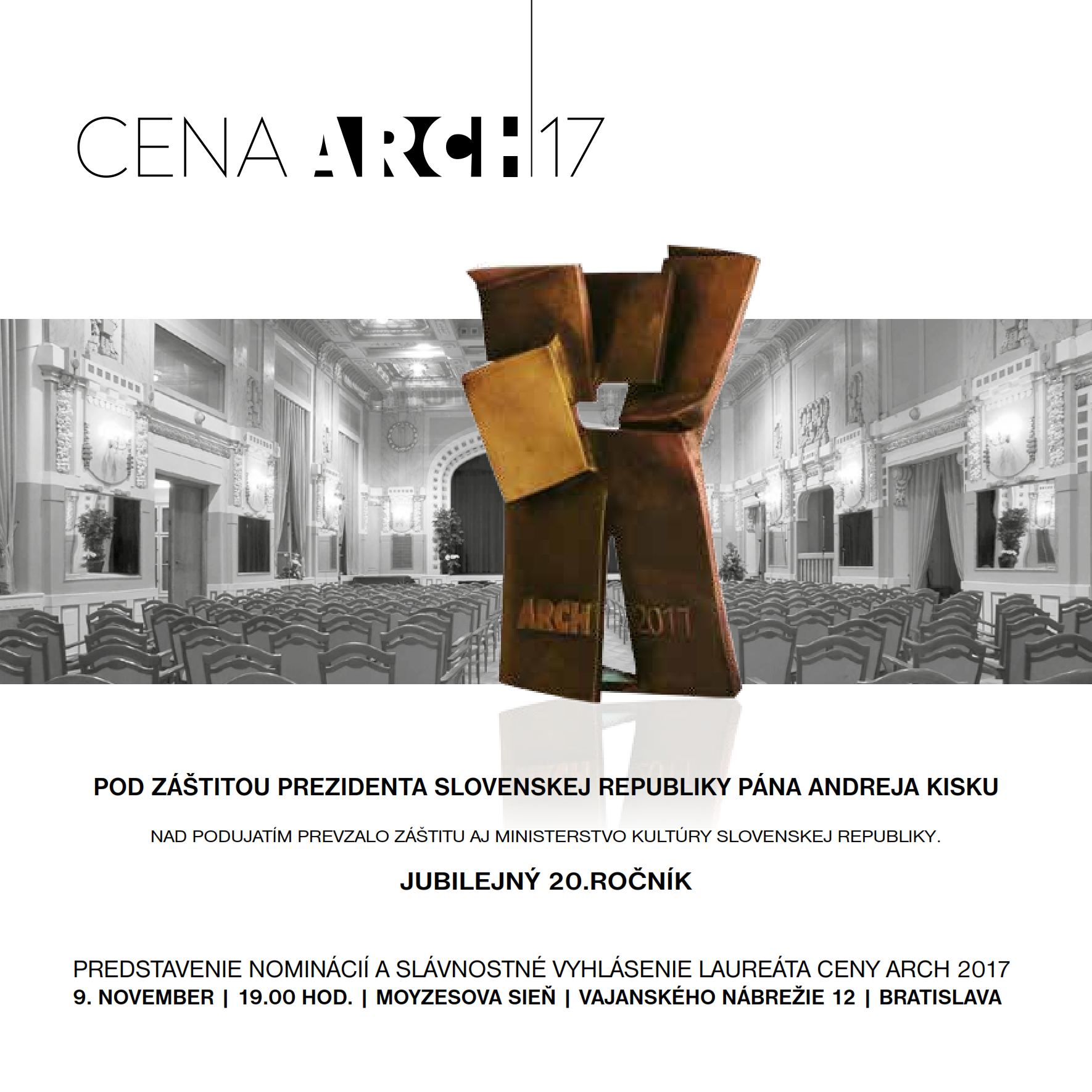 To, kto z nominovaných cenu získa sa dozvieme na galavečere, ktorý sa bude konať 9. novembra 2017 v Moyzesovej sieni FF UK v Bratislave. Vydavateľstvo EUROSTAV a redakcia časopisu ARCH však už šiestykrát dávajú možnosť vyjadriť svoj názor na nominované architektonické diela Ceny ARCH aj verejnosti.