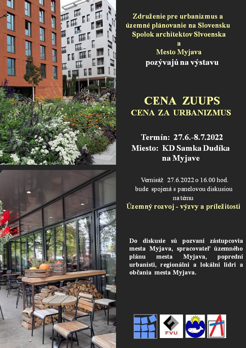 V dňoch 27. júna až 8. júla 2022 bude v Kultúrnom dome Samka Dudíka v Myjave inštalovaná výstava "Cena ZUUPS - Cena za urbanizmus". Výstava zahŕňa zhruba 50 panelov, na ktorých budú predstavené víťazné a nominované diela na Cenu ZUUPS za roky 2011 až 2019. Cenu vypisuje Združenie pre urbanizmus a územné plánovanie na Slovensku (ďalej ZUUPS) pri Spolku architektov Slovenska bienálovitým spôsobom a diela do súťaže prihlasujú mestá, obce, investori alebo aj autori. Cieľom výstavy je prezentovať inšpiratívne príklady kvalitného územného rozvoja a diela urbanisticko-architektonicko-krajinárskej tvorby, ktoré boli odbornou porotou nominované a v súťaži ocenené.