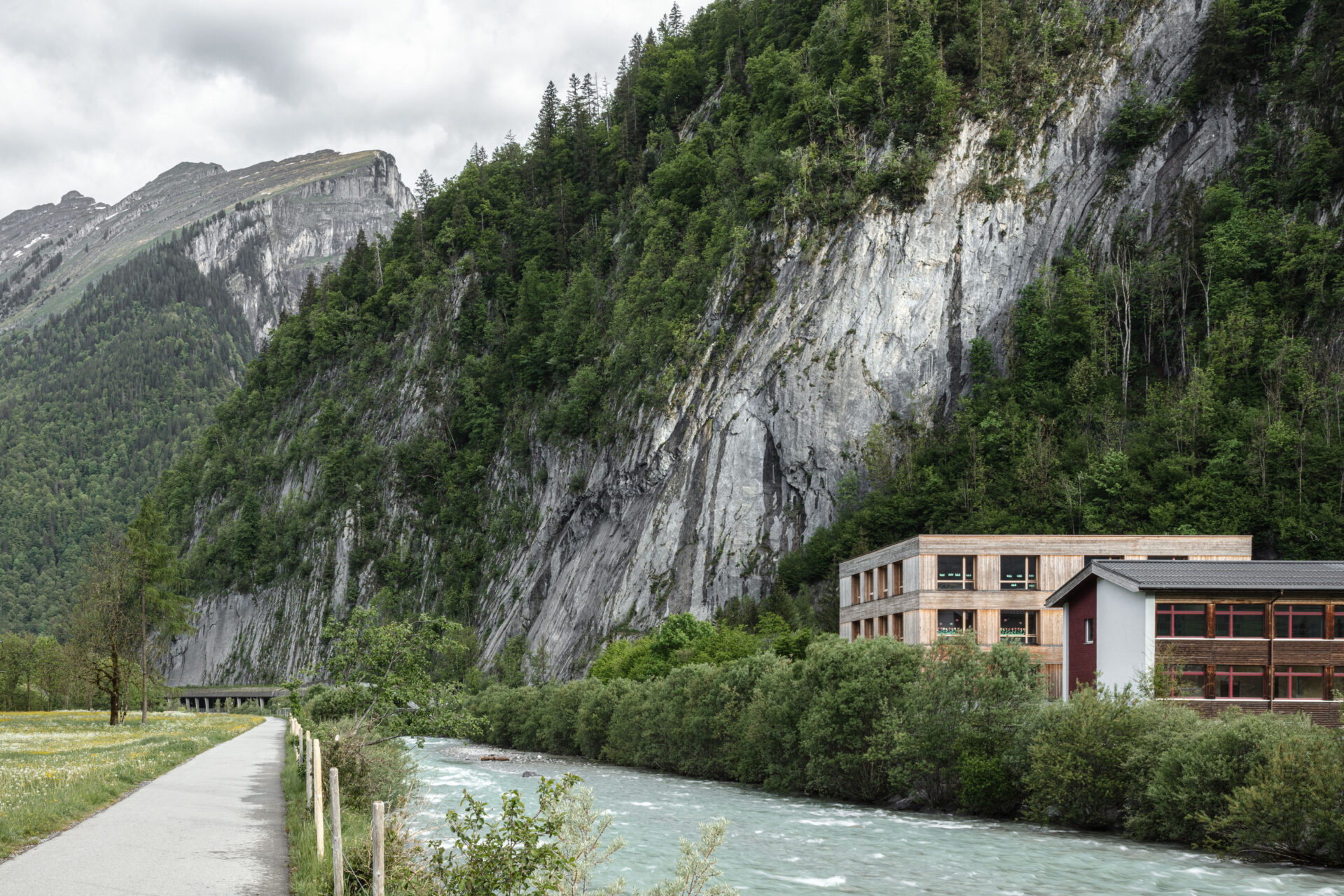 The material palette reflects the region’s architectural heritage, with the school building featuring a facade clad in larch wood. The interior continues this theme, utilizing timber finishes to create warm and inviting learning spaces. Concrete elements provide a robust counterpoint, ensuring durability while maintaining visual balance.
