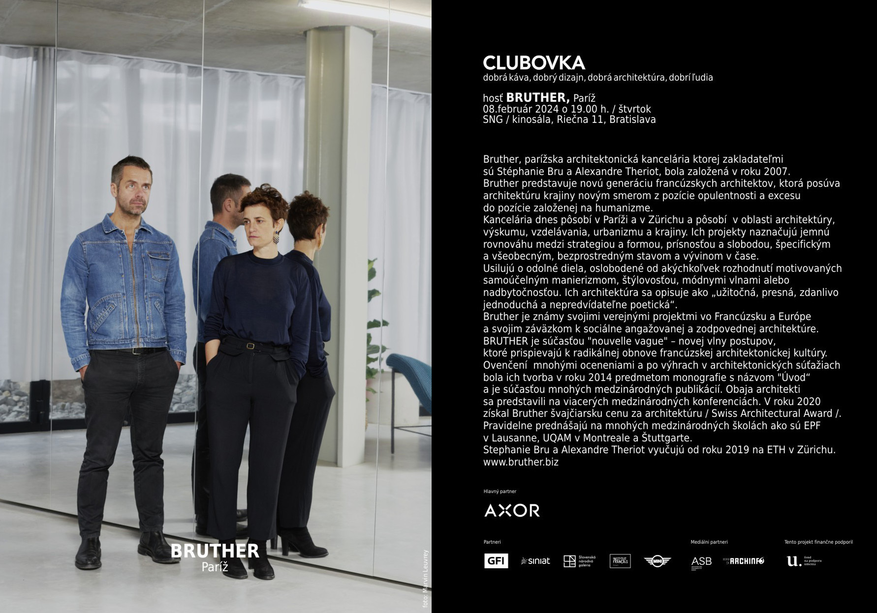 Parížsky ateliér BRUTHER založili Stéphanie Bru a Alexandre Theriot v roku 2007. Architekti predstavujú novú generáciu francúzskych autorov, ktorá posúva architektúru z pozície opulentnosti a excesu do roviny racia a humanizmu. Ateliér pôsobí v Paríži a v Zürichu. Angažuje sa v oblastiach architektúry, výskumu, vzdelávania a urbanizmu. Ich projekty charakterizuje hľadanie rovnováhy medzi koncepciou, formou, prísnosťou a slobodou. V tvorbe sa snažia oslobodiť od rozhodnutí motivovaných samoúčelným manierizmom, alebo módnymi vlnami. Svoju tvorbu opisujú ako “precíznu, zdanlivo jednoduchú, s nepredvídateľným poetickými aspektmi”.
