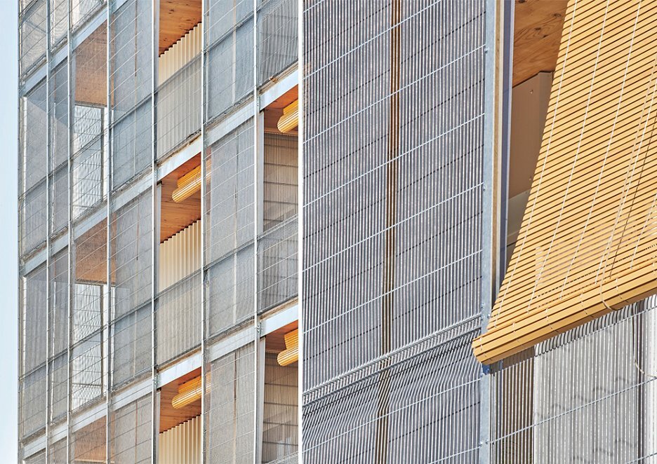 Projekt je podľa slov ateliéru najväčšou obytnou budovou s drevenou konštrukciou v Španielsku, postavenou z 8 300 metrov kubických lokálneho dreva. Využitie 543 miestností s výmerou 13 m2 definuje krátky modul s rozponom 3,60 m. Na oceľobetónovú konštrukciu prízemia nadväzuje prefabrikovaný systém z CLT panelov, vďaka ktorému sa podarilo optimalizovať objem drevených konštrukcií na 0,24 m3/m a náklady na 950 €/m2 podlahovej plochy.