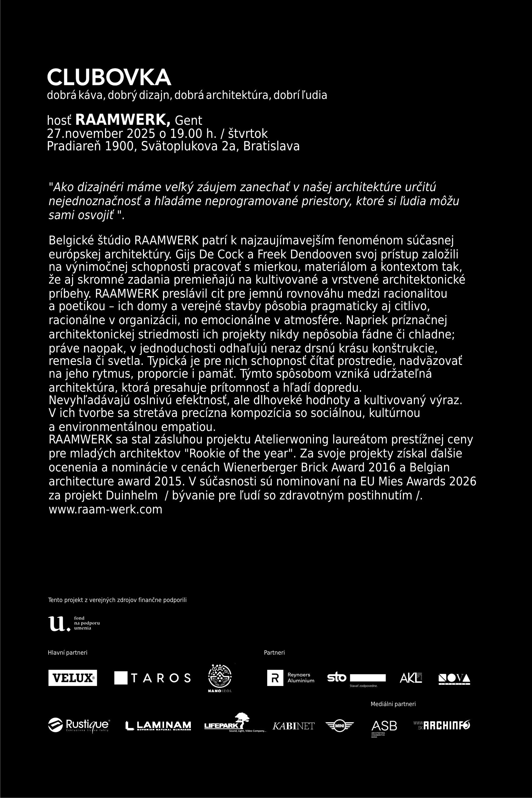 V prvej časti Clubovky bude hosťom belgický ateliér Raamwerk.