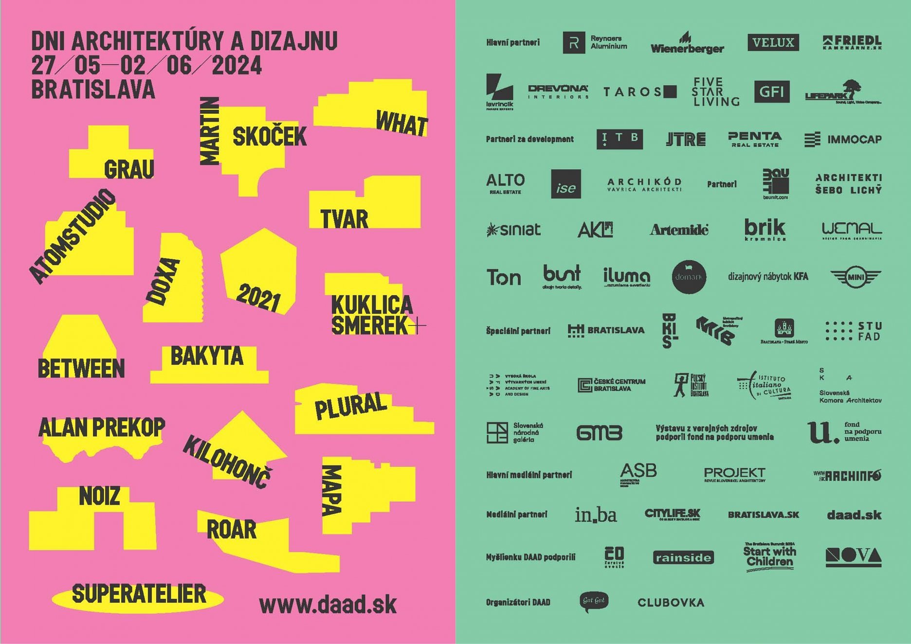 DAAD (Dni architektúry a dizajnu) pokračujú vo svojej každoročnej misii otvárať svet architektúry a dizajnu čo najširšej verejnosti a prepájať lokálnu scénu s tou globálnou. 15. ročník festivalu DAAD sa koná v dňoch 28. mája až 2. júna v Bratislave pod záštitou primátora mesta Bratislavy a starostu Starého Mesta Bratislava, v spolupráci so Slovenskou komorou architektov, a vysokými školami FAD STU a VŠVU. Súčasťou podujatia je aj 7. ročník DAAF (Dni architektúry a filmu).