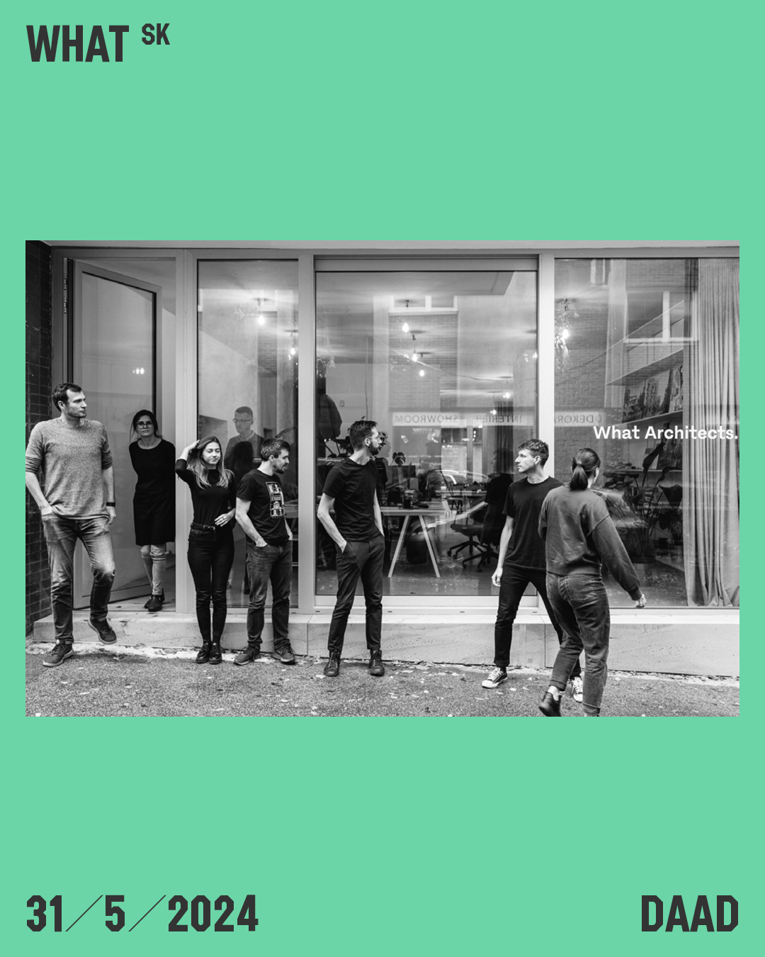 Sme What Architects., mladé architektonické full-scale štúdio založené hneď po škole v roku 2012 dvomi spolužiakmi, Tomášom Krištekom a Ondrejom Kurekom. Cez drobnú mierku sme sa postupne dostali až k väčším zadaniam. Aktuálne v našom ateliéri pracuje desať architektov na rôznych projektoch od mierky komorného interiéru, cez mierku rodinného domu, až po mierku obytných súborov a urbanizmus. V širokej škále zadaní vidíme možnosť testovať témy, ktoré nás zaujímajú z rozdielnych pohľadov a v rôznom detaile. S tým súvisí aj náš rastúci záujem o navrhovanie z dreva, v ktorom vidíme veľkú budúcnosť. what.sk