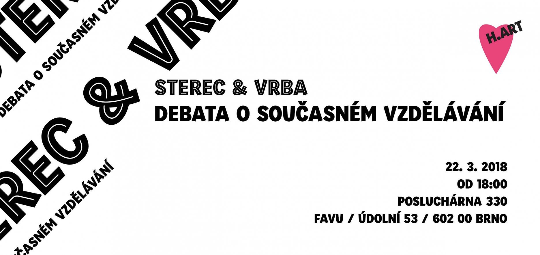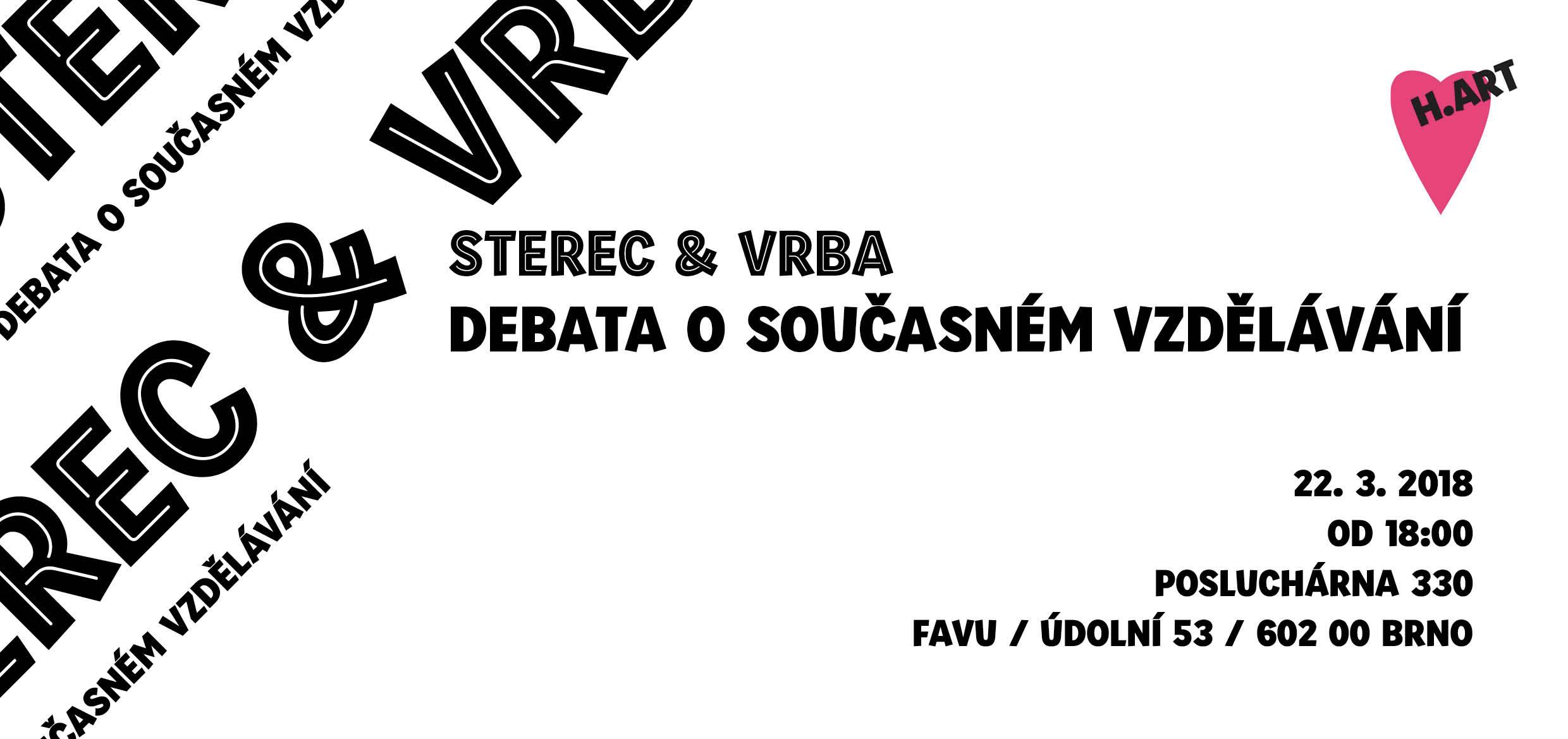 Pavel Sterec (umělec, pedagog, aktivista a vedoucí ateliéru intermedií na FAVU) bude hovořit se svým bývalým studentem Martinem Vrbou (výtvarník a publicista) o současném stavu uměleckého vzdělávání nejen na FAVU.