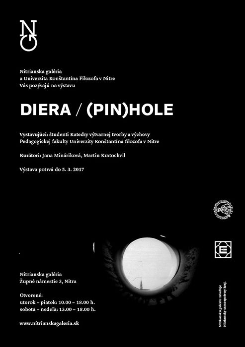 Diera v hlave, diera v duši, diera do sveta, diera vo fotoaparáte. Diera, cez ktorú môžeme sledovať, aj byť sledovaní. Diera, ako priezor do sveta. Bezpečie alebo nebezpečie zažívame podľa toho, na ktorej strane „diery“ stojíme. Je svet dolu hlavou rovnako ako jeho odraz na vnútornej stene camery obscury? Kladenie otázok a nachádzanie ďalších. Študenti KVTV UKF v Nitre skúmajú, ako hlboko sa dokážu cez „dieru“ vlastnej mysle ponoriť do svojho vnútra.