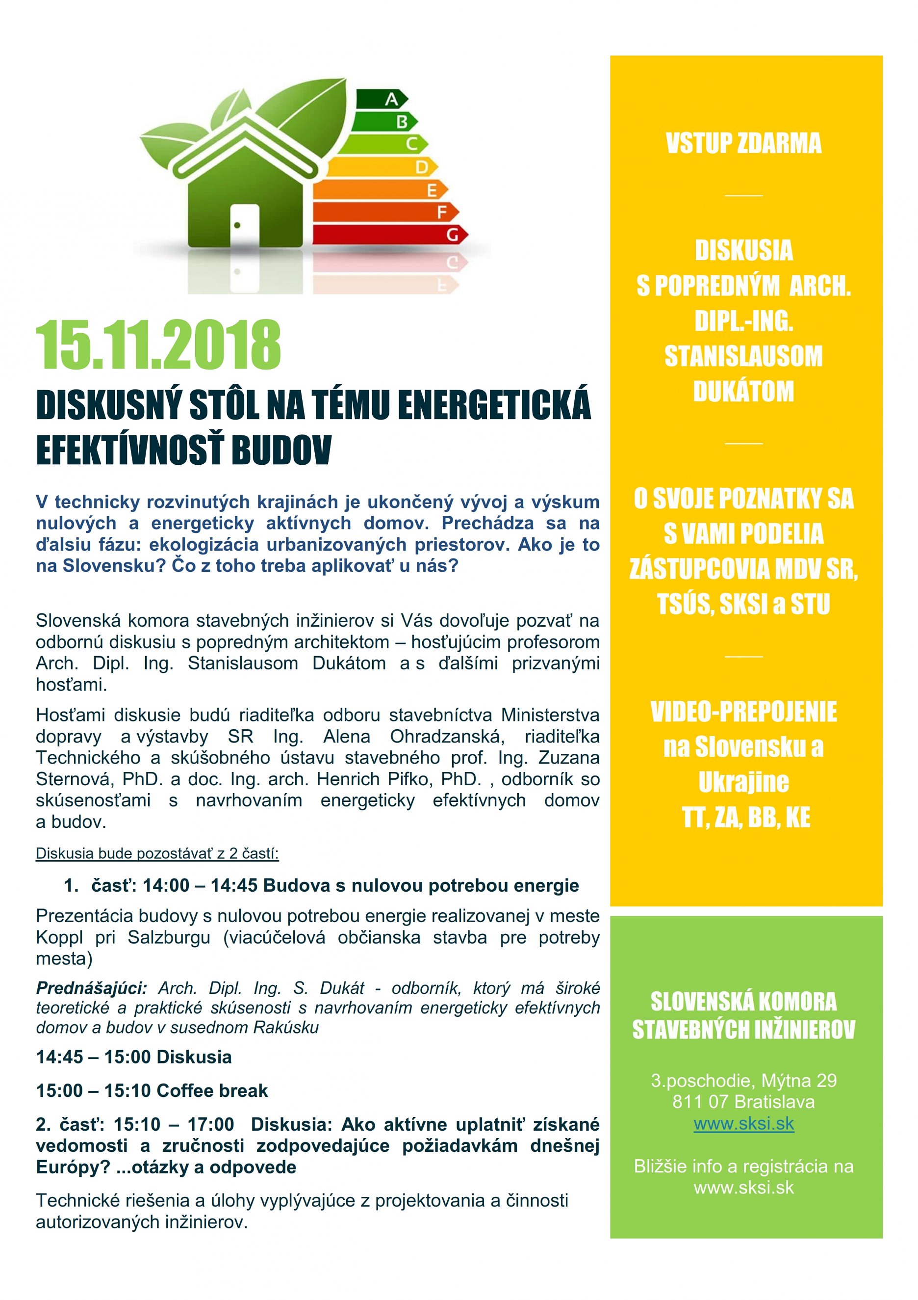 Slovenská komora stavebných inžinierov si Vás dovoľuje pozvať na odbornú diskusiu s popredným architektom – hosťujúcim profesorom Arch. Dipl. Ing. Stanislausom Dukátom a s ďalšími prizvanými hosťami.
