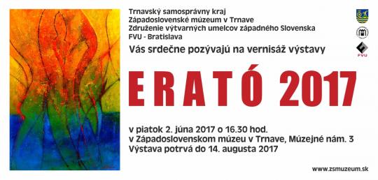 Vyše 70 výtvarných diel od 27 autorov bude od piatku 2. júna vystavených v budove Západoslovenského múzea v Trnave. Ide prevažne o maľby olejom, akrylom či kombinovanú techniku. Niekoľko autorov vystavuje kresby, pastely a fotografie. V rámci témy sú prevažne inšpirované ženským telom, čo je ústredný motív výstavy ERATÓ 2017.