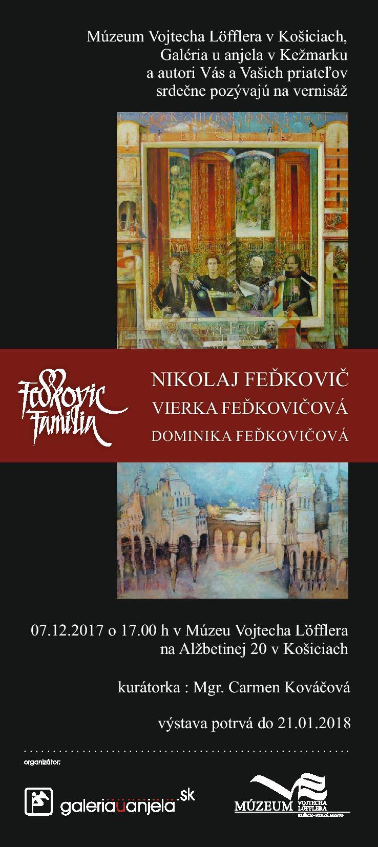 V Múzeu Vojtecha Löfflera vystavujú výber z diel renomovaný slovenský výtvarník Nikolaj Feďkovič spolu so svojou manželkou Vierkou Feďkovičovou. V tomto zastúpení sa predstavujú slovenskému publiku po dlhej dobe. Výstava je zameraná na portrétnu tvorbu a unikátne kaligrafické práce autora. Táto časť tvorby je pre slovenského diváka takmer neznáma. Vierka Fedkovičová prezentuje prierez tvorby od návrhu divadelných kostýmov pre Národné divadlo v Prahe až po snové zátišia, fantastické architektúry a zvláštny svet cirkusových šapitó. Spoločná prezentácia diel celej rodiny Feďkovičovcov je zdôraznená nielen názvom Família Feďkovič, ale aj symbolickou prítomnosťou diel dcéry Dominiky Feďkovičovej. Výstava prezentuje v čase Vianoc to, čo tak úporne hľadáme po celý rok – harmóniu a chvíle pokoja v kruhu rodiny.
