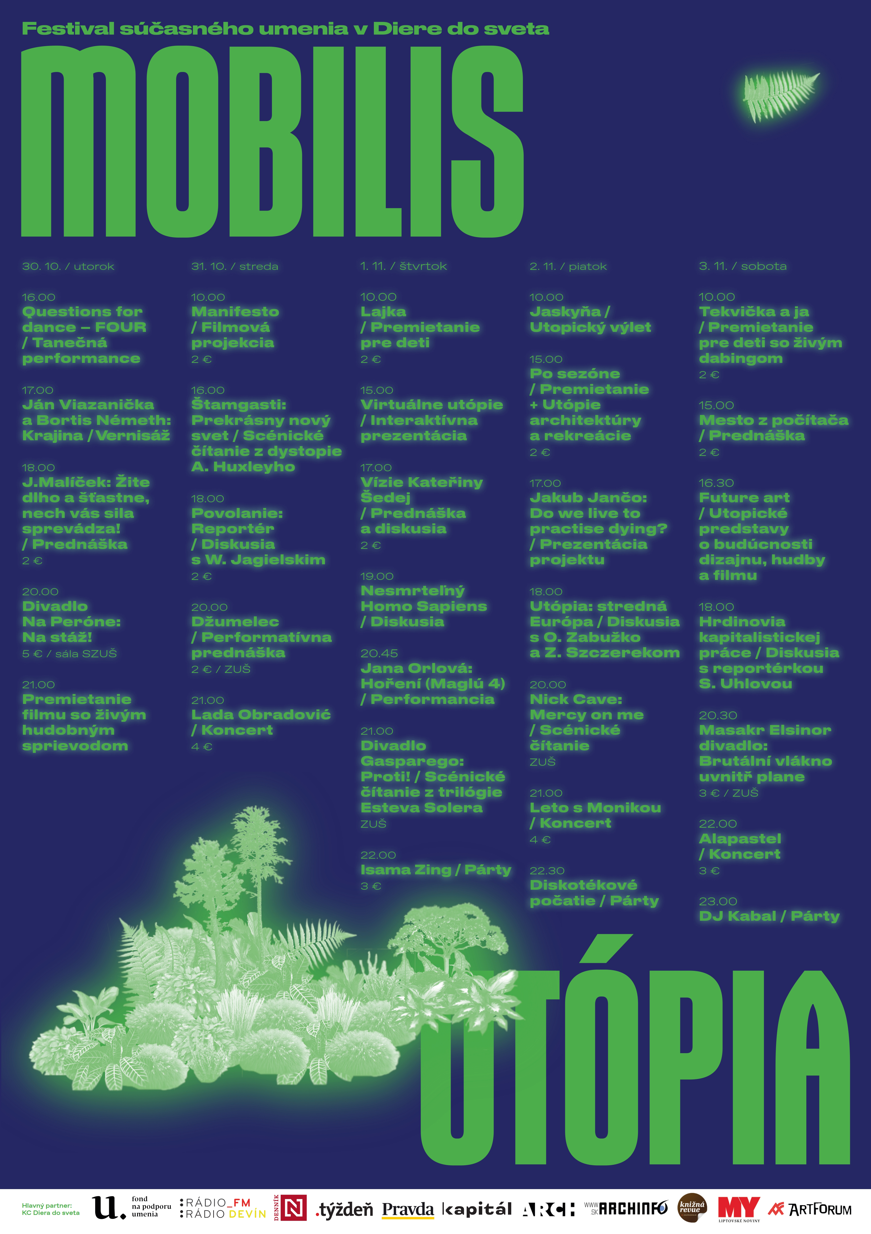 Na festival Mobilis, ktorého témou je ’Utópia’, prídu začiatkom novembra Wojciech Jagielski, Saša Uhlová, či Kateřina Šedá. Kultúrne centrum Diera do Sveta pre hostí a účinkujúcich tiež pripravila komentovaný výlet do jaskyne, koncerty, gastro-diskusie, prednášky, aj videohry.