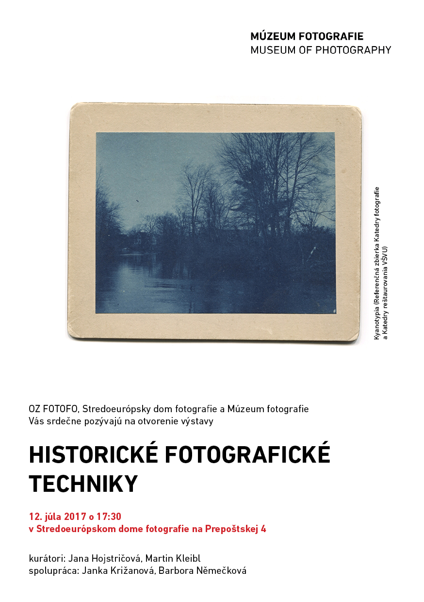 Joséph Nicéphore Niépce a Jacques Louis Mandé Daguerre tento problém vyriešili a podarilo sa im obraz vzniknutý na striebornej platni ustáliť. Po ďalšom zdokonaľovaní bol nakoniec (až po smrti Niépca) v roku 1839 proces patentovaný a predstavený verejnosti pod názvom „dagerotypia“. Od tej doby sa fotografické techniky neustále zdokonaľovali a množstvo bádateľov hľadalo nové spôsoby, ktoré by proces vzniku fotografie zjednodušili a sprístupnili čo najväčšiemu počtu užívateľov. Expozícia predstavuje základný prehľad historických fotografických techník – od dagerotypie, ambrotypie, tintypie a ďalších, cez techniky ušľachtilých tlačí (kyanotypia, gumotlač a pod.), až po reprodukčné techniky tzv. fotomechanických tlačí. Všetky exponáty pochádzajú z referenčnej zbierky Katedry fotografie a Katedry reštaurovania VŠVU v Bratislave.