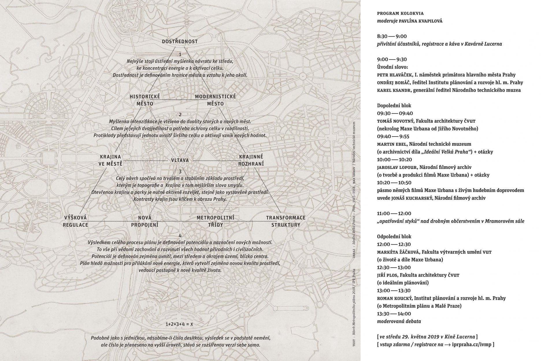 Bohatý program kolokvia v stredu 29. mája komplexne predstaví osobnosť a tvorbu „zakladateľa“ pražského plánovania dvadsiateho storočia – architekta, urbanistu, ale aj filmára Maxa Urbana. Jeho odkaz súčasnosti, vo svetle utopistických, ideálnych, ale aj pragmaticky reálnych plánov, bude prezentovaný na súčasnom spôsobe plánovania mesta na prahu tretieho tisícročia. Kolokvium moderuje PAVLÍNA KVAPILOVÁ.