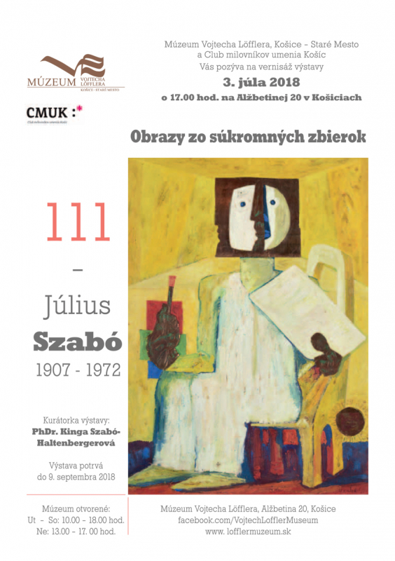 Výstava 111 - Július Szabó predstaví prierez celoživotnej maliarskej tvorby autora z príležitosti 111. výročia jeho narodenia. Od 3. júla 2018 sa v Múzeu Vojtecha Löfflera predstaví výber obrazov zo súkromných zbierok. Kurátorkou výstavy je PhDr. Kinga Szabó-Haltenbergerová.