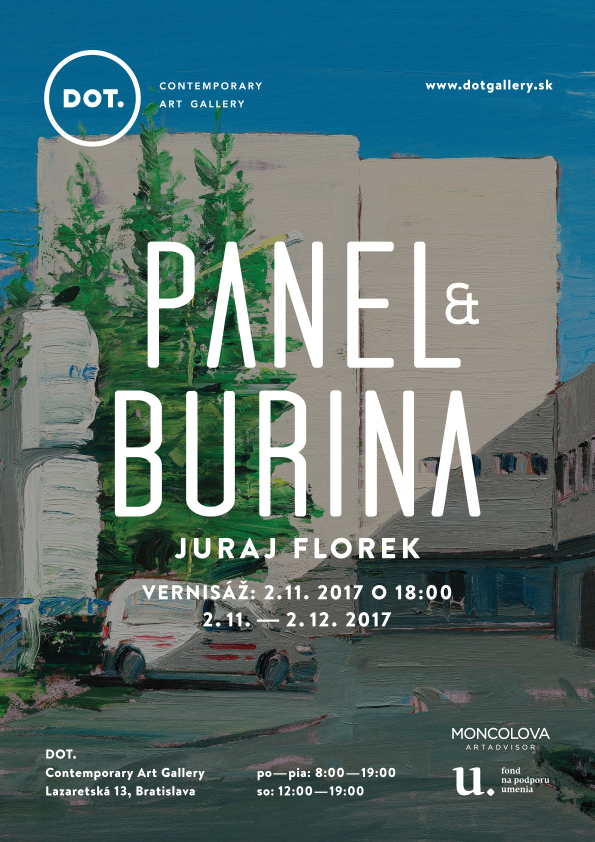 Výstava Juraja Floreka, absolventa Akadémie umení v Banskej Bystrici, zároveň aj laureáta ceny Nadácie VÚB Maľba v roku 2014, je prierezovou výstavou jeho ostatnej maliarskej tvorby. Juraj Florek sa cíti sa byť bytostným maliarom, plenéristom, ktorý si vyberá urbánne témy. Jeho maliarskou realitou je nomádstvo, svoje diela maľuje zoči -voči realite mestského priestoru, alebo zanikajúcich technických stavieb, či novodobých skladových hál. Napriek tomu, že sa narodil v Dolnom Kubíne a väčšinu času trávil na sídlisku s výhľadmi na okolité kopce a prírodu, láka ho mestská realita. Jeho spôsob práce pripomína nomáda a výskumníka, kde systémom urbánnej explorácie nachádza opustené technické haly a dvory, do ktorých sa vkráda s paletou, stojanom a plátnom. Maľuje na mieste fascinovaný panelovými celkami, do ktorých vždy zasahuje príroda ako hostiteľ (alebo je to vice versa naopak?). Vyberá si výsek reality, ktorý nie je pekný, jeho maliarsky rukopis ho pre diváka mierne idealizuje. Na výstave Panel & burina nechýba obraz zadného traktu nemocnice, kotolňa, nákladová rampa veľkého reťazca, hospodársky dvor – skrátka plejáda vyludnených technických zázemí veľkých stavieb, ich maľbou robí civilnejšími, známejšími, menej ošarpanejšími a trochu idealizovanými pre diváka, ktorý nemá práve záujem s pohľadom na betónové celky. Autor z dôvodu nevyhnutného presunu za inšpiráciou, maľuje na menší a stredný formát. Ten tiež do istej miery idealizuje pre diváka daný výjav, robí ho nenuteným a zároveň upriamuje jeho pozornosť na nový výsek reality. Rukopis teda ovplyvňuje meniaci sa čas, preto nanáša autor farby v hrubšej vrstve dáva im akúsi čiastočnú "van-goghovskú" rozkolísanosť, hektiku, inak väčšinou pokojného a vyludneného miesta.