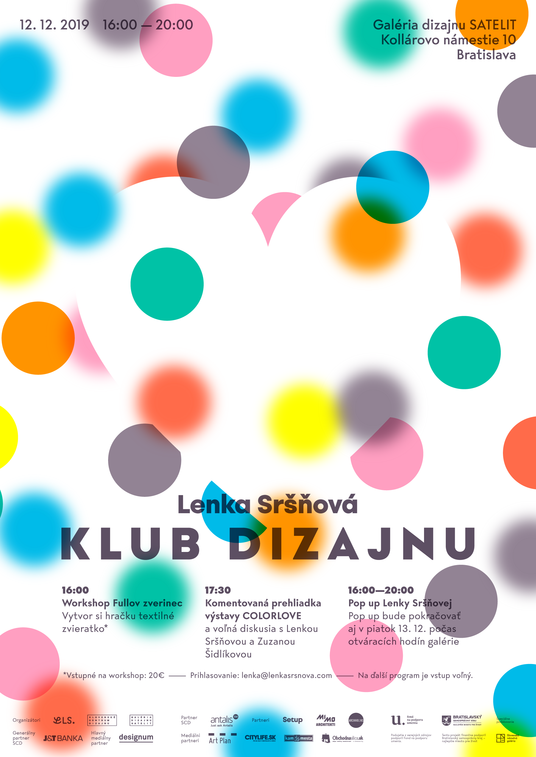 Tento Klub dizajnu bude vlastne celým popoludním, kedy si môžete prísť s Lenkou vytvoriť hračku na workshope, dozvedieť sa viac o výstave a jej tvorbe na komentovanej prehliadke a diskusii, ktorú povedie Lenka spolu s kurátorkou Zuzanou Šidlíkovou. Alebo sa môžete prísť len tak s Lenkou porozprávať, poradiť a možno si aj kúpiť nejaký nový kúsok do šatníka v rámci Pop up-u, ktorý v galérii nájdete vo štvrtok a v piatok.
