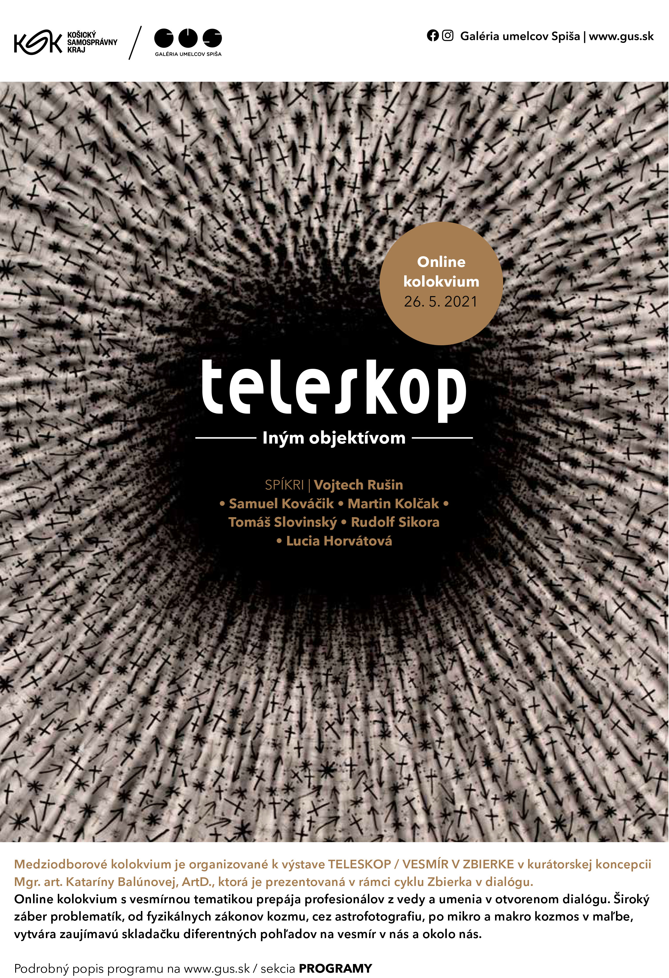 Galéria umelcov Spiša – kultúrne zariadenie Košického samosprávneho kraja, pripravila pre verejnosť medziodborové kolokvium organizované k výstave Teleskop / Vesmír v zbierke v kurátorskej koncepcii Mgr. art. Kataríny Balúnovej, ArtD. Výstava je prezentovaná v rámci dramaturgického cyklu Zbierka v dialógu a prezentuje diela 30-tich autorov zo zbierkového fondu galérie so zaostrením na individuálne vesmíry, reflektujúc astronomické javy a atmosféru nočnej oblohy. Participácia štyroch zahraničných hostí (CA, ES, UA) vytvára konštruktívny dialóg a otvára priestor na reflexiu.
