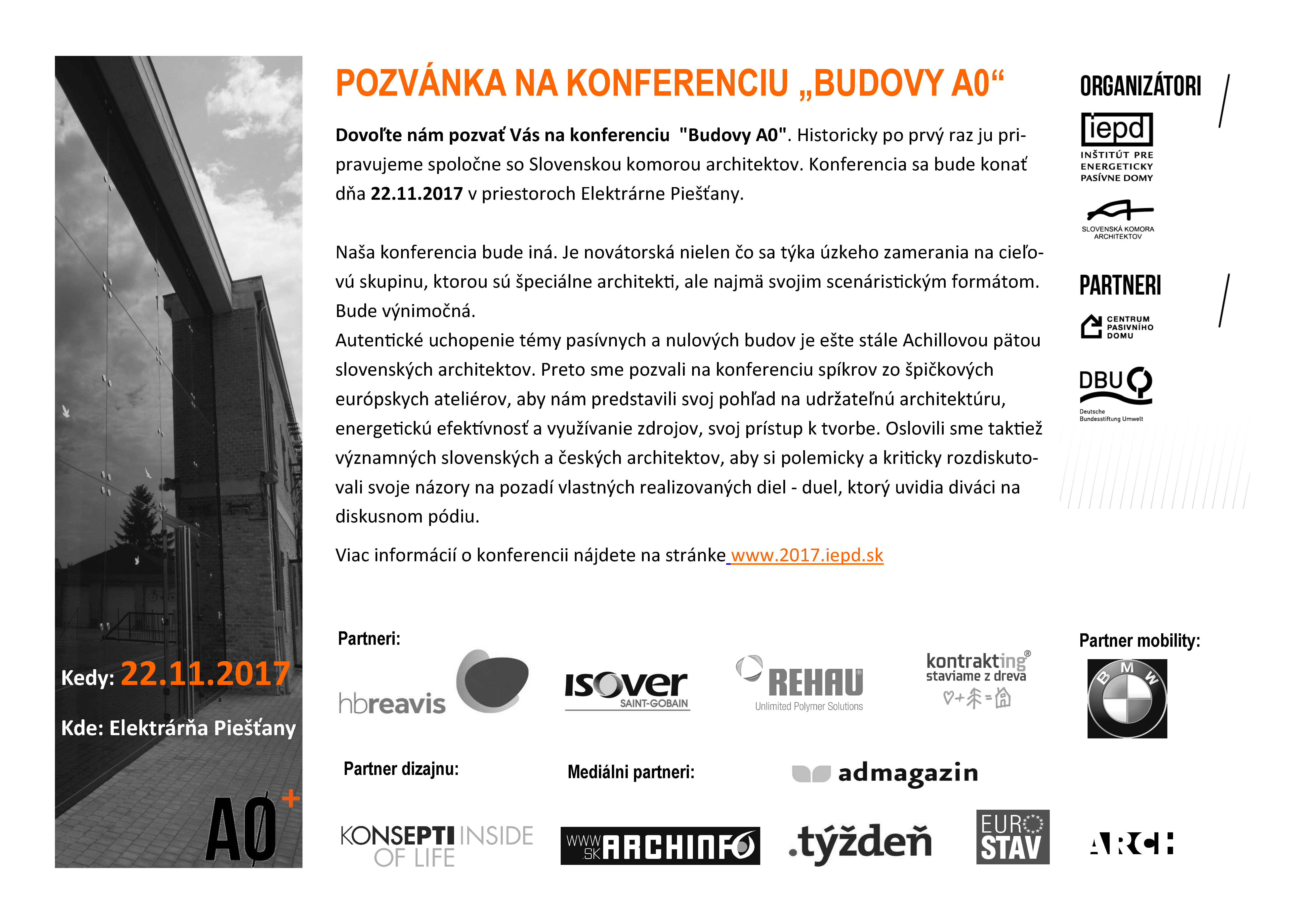 Podujatie sa bude konať dňa 22.11.2017 v priestoroch Elektrárne Piešťany. Organizátormi sú Inštitút pre pasívne domy spoločne so Slovenskou komorou architektov, v spolupráci s českým Centrom pasívního domu.