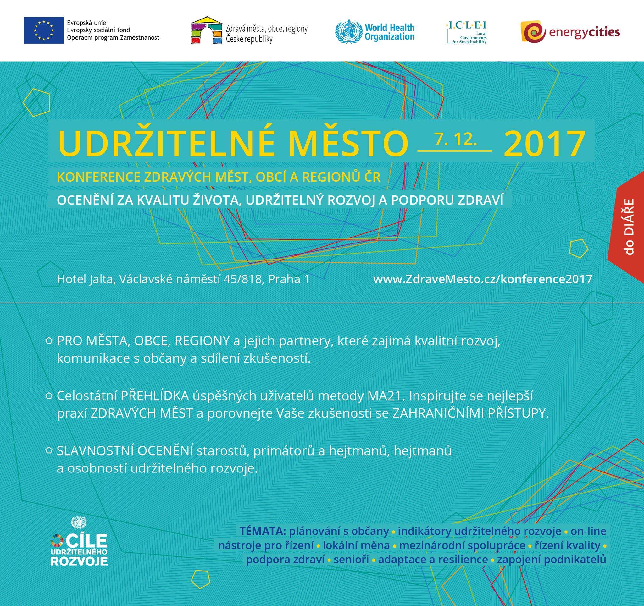 Celostátní přehlídka úspěšných uživatelů metody MA21 je určena pro města, obce, regiony a jejich partnery, které zajímá kvalitní rozvoj, komunikace s občany a sdílení zkušeností. Inspirujte se i Vy nejlepší praxí Zdravých měst a porovnejte Vaše zkušenosti se zahraničními přístupy. Součástí konference je slavnostní ocenění starostů, primátorů, hejtmanů a osobností udržitelného rozvoje.