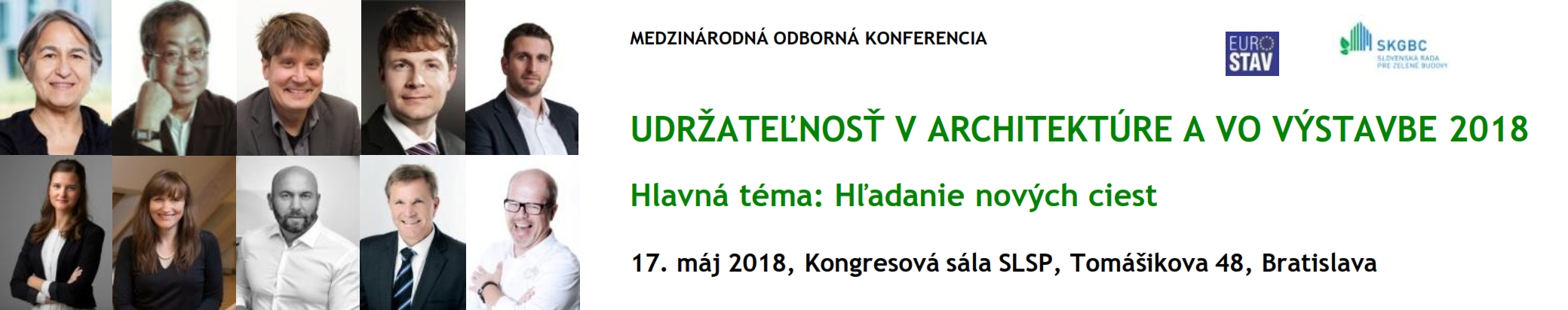 Táto každoročne najočakávanejšia udalosť, organizovaná Vydavateľstvom Eurostav a Slovenskou radou pre zelené budovy (SKGBC) je už tradične medzi odbornou verejnosťou stredobodom pozornosti. Aj tento rok sa konferencia koná v kongresovej sále SLSP v Bratislave a je plná zvučných mien a významných hostí. Hlavnou témou ôsmeho ročníka je Hľadanie nových ciest, čo napovedá, že sa bude hovoriť o najprogresívnejších a najaktuálnejších témach.