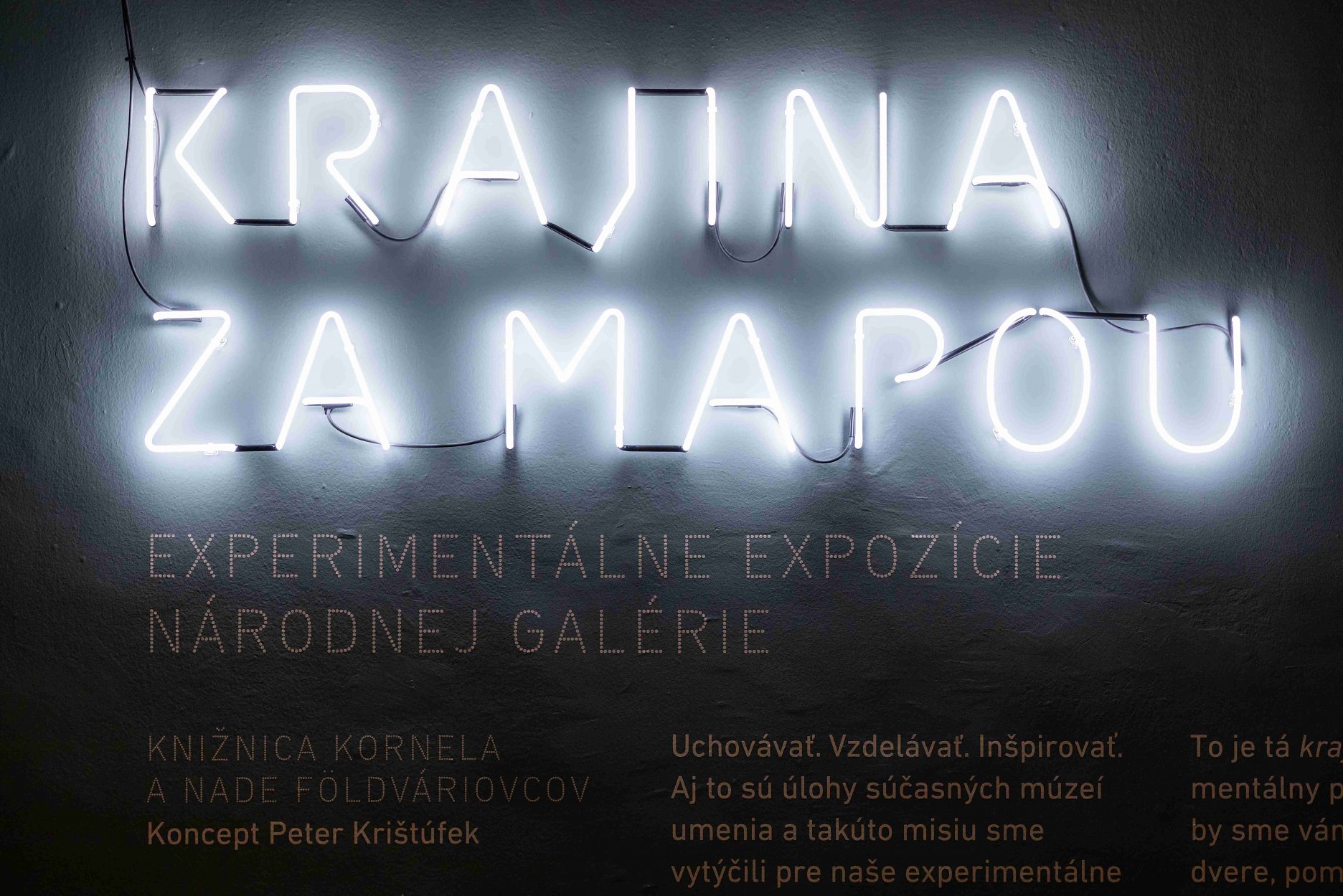 Uchovávať. Vzdelávať. Inšpirovať. Aj to sú úlohy súčasných múzeí umenia. Otázkou potom je, ako sprostredkovať takýto druh myslenia a obsahov návštevníkovi – práve tomu sa venujú experimentálne expozície zamerané na nie celkom klasický galerijný obsah. Prvé dve – Knižnicu Kornela a Nade Földváriovcov a Podivuhodné dejiny umenia s profesorom Škrečkom – uvádza SNG pod súhrnným názvom Krajina za mapou. Napriek ich rozdielnosti ich pevne spája poslanie, ktoré si SNG definovala už dávnejšie – prezentovať návštevníkom popri fondoch aj ďalšie obsahy, uviesť ich do širších kultúrnych kontextov, sprostredkovať poznanie, inšpirovať, byť miestom kultúrnych experimentov. Zámerom bolo zároveň vytvoriť prostredie, kde by sa návštevníci cítili dobre a nadviazali nekomplikovaný vzťah k dejinám umenia, ktorý môžu (aj pod naším vedením) ďalej kultivovať. A ukázať, že je tu rovnaké umenie pre deti, dospelých aj odborníkov.