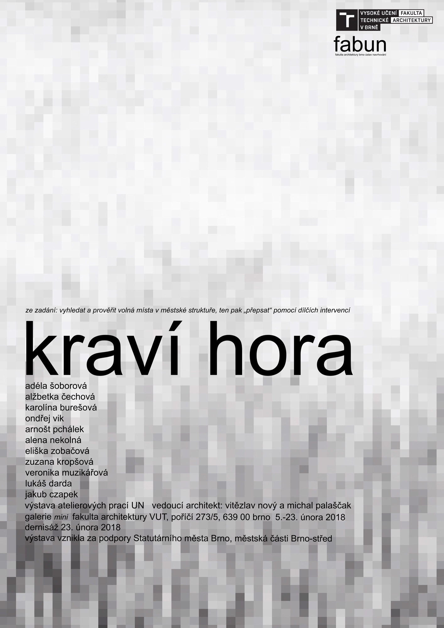 V termínu 5. - 23. února 2018 se Galerii MINI uskuteční výstava ateliérových prací studentů Ústavu navrhování z ateliéru Vítězslava Nového a Michala Palaščáka. Zadání “Kraví hora“ se zabývalo vyhledání a prověřením volných míst v městské struktuře a ten pak “přepsat“ pomocí dílčích intervencí. Na projektech se podíleli studenti Adéla Šobrová, Alžbětka Čechová, Karolína Burešová, Ondřej Vik, Arnošt Pchálek, Alena Nekolná, Eliška Zobačová, Zuzana Kropšová, Veronika Muzikářová, Lukáš Darda a Jakub Czapek. Výstava vznikla za podpory Statutárního města Brno, městské části Brno-střed.