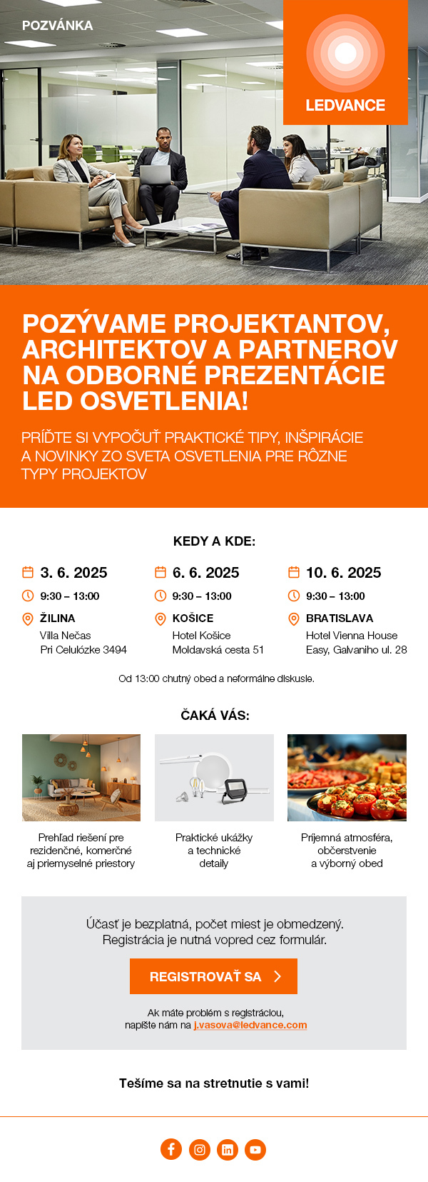 Pozývame projektantov, architektov a partnerov na odborné prezentácie led osvetlenia!