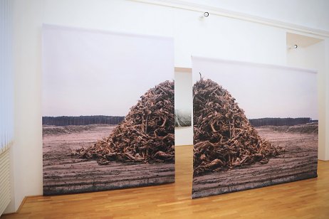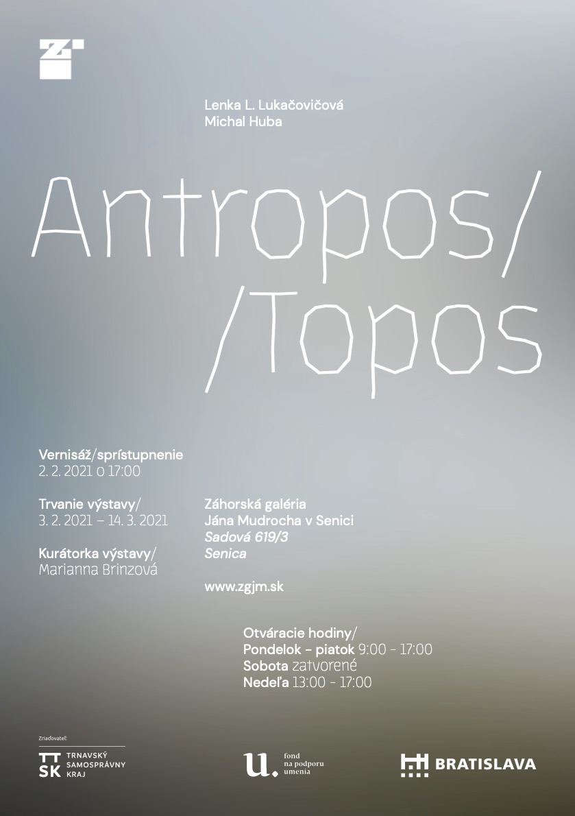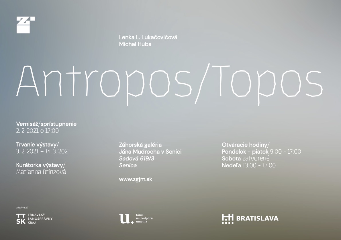 Výstavný projekt dvoch mladých autorov Lenky L. Lukačovičovej (*1987) a Michala Hubu (*1990) prezentuje série ich autorských analógových fotografií. Antropos/Topos tematizuje vzťah prírodného a ľudského ako dvoch protikladných a zároveň koexistujúcich veličín. Dve komplementárne polohy (krajinné, územné – topos a ľudské – antropos) sa tu nevylučujú, skôr vzájomne prestupujú, preplietajú, splývajú a zrkadlia. Práce oboch autorov oscilujú na pomedzí vizuálnej topografie, konkrétneho krajinného alebo urbánneho priestoru a poetickej výpovede. Cez výskum fotografického média, s ktorým zachádzajú podobne a zároveň rozdielne, prinášajú špecifický pohľad na danú tému.