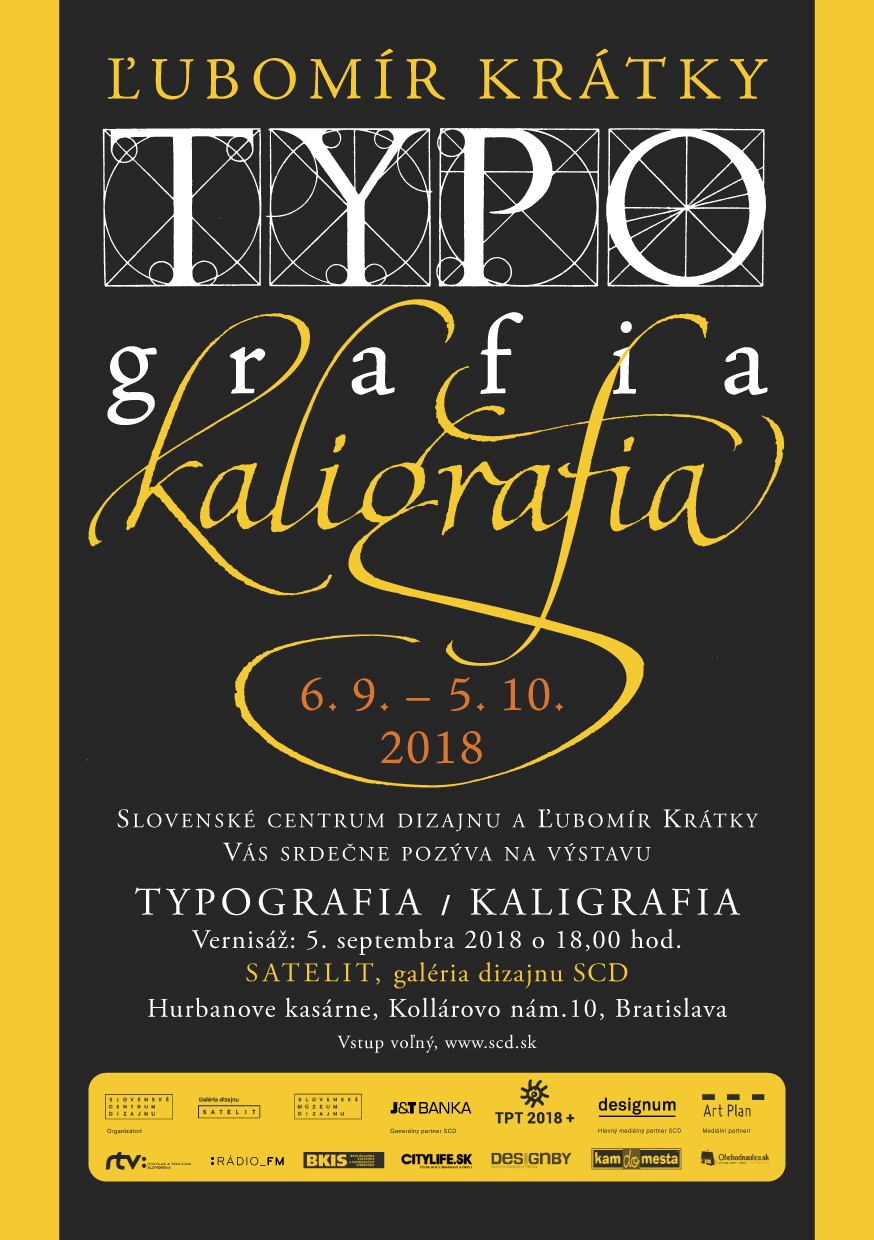 Slovenské centrum dizajnu, galéria dizajnu Satelit a Slovenské múzeum dizajnu predstavujú monografickú výstavu slovenského typografa, kaligrafa a grafického dizajnéra Ľubomíra Krátkeho (1939) s názvom Typografia a kaligrafia. Výber vystavených diel pochádza z autorovho osobného archívu a zo zbierok Slovenského múzea dizajnu. Výstava kladie dôraz predovšetkým na autorovu knižnú tvorbu, resp. grafickú úpravu kníh a prácu s písmom.