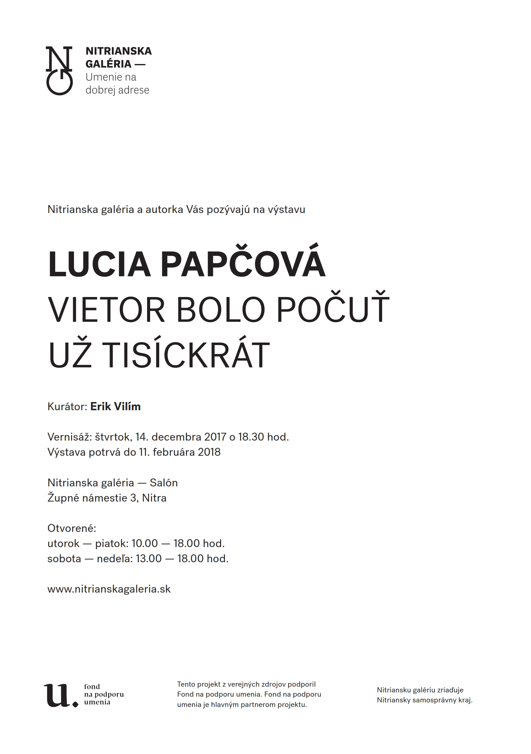 Všetky tieto slová a vety sa môžu javiť bez vzájomného vzťahu. Napriek tomu, prechádzajú naprieč celou umeleckou produkciou autorky mladej generácie, Lucie Papčovej. Vystupujú na povrch v rámci všetkých médií, v ktorých sa vyjadruje − fotografia, videoinštalácia či objekt.