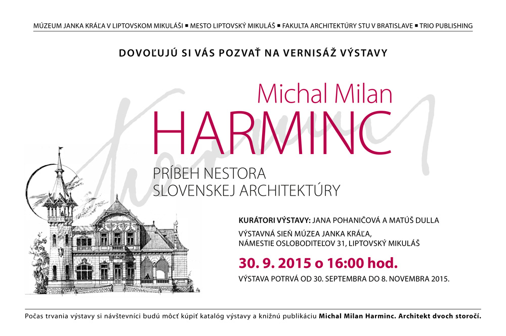 Architekt dvoch storočí či bravúrny eklektik s nesmierne širokou štýlovou a typologickou škálou tvorby – aj takto možno charakterizovať dielo Michala Milana Harminca (1869-1964), jedného z nestorov slovenskej architektúry, v ktorého tvorbe sa snúbi dedičstvo historických slohov a podnety moderny i funkcionalizmu zároveň. Impozantných takmer 300 realizovaných stavieb na území bývalého Rakúsko – Uhorska, neskôr Československa (dnes Slovenská republika) či na pôde nástupníckych štátov – v Maďarsku, v Srbsku, v Rumunsku, no i na Ukrajine ho v rokoch 1887 – 1951 zároveň právom zaradili k najproduktívnejším architektom nielen na Slovensku, ale aj v stredoeurópskom priestore.