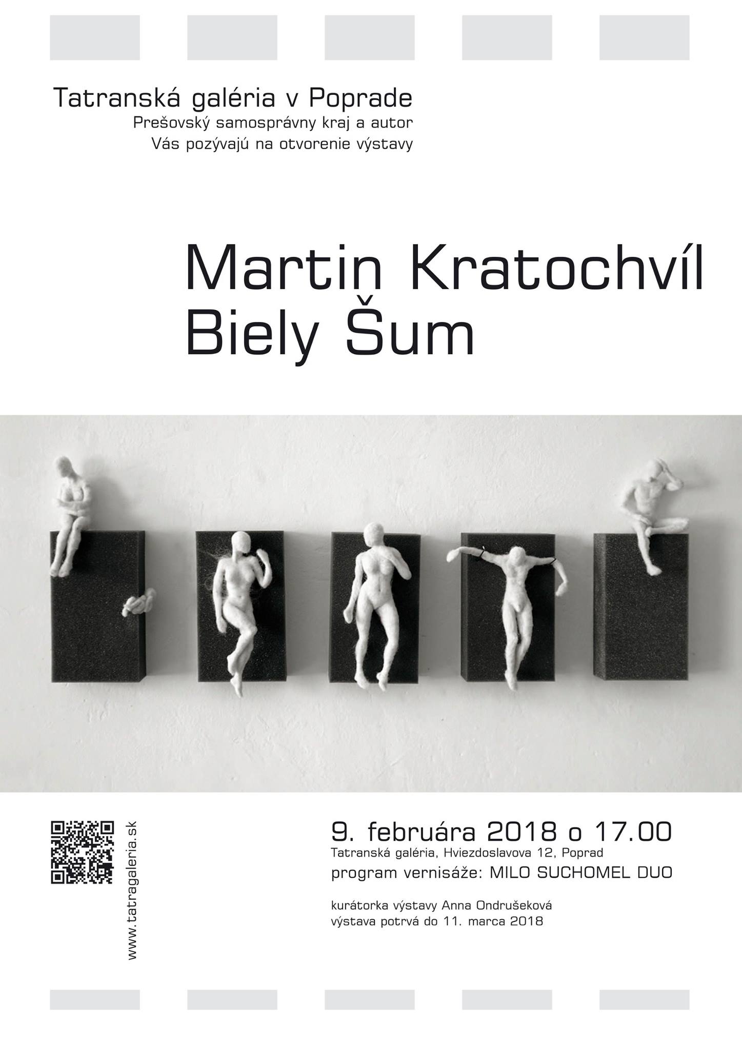 Autorská výstava výtvarníka a pedagóga Martina Kratochvíla využíva médium fiber art a mäkkú plastiku. Kratochvíl pracuje v inštalácii s formáciou ľudskej figúry a banalitou ľudských gest a postojov. Kompozícia figúr vytvára v priestore ilúziu zrnenia a „biely šum“, ktorými chce Kratochvíl poukázať na pominuteľnosť a márnosť ľudského bytia. Výstava bola vytvorená na základe inštalácie, ktorá vznikla po udelení ceny autorovi združením Textilných miniatúr TxT roku 2016.