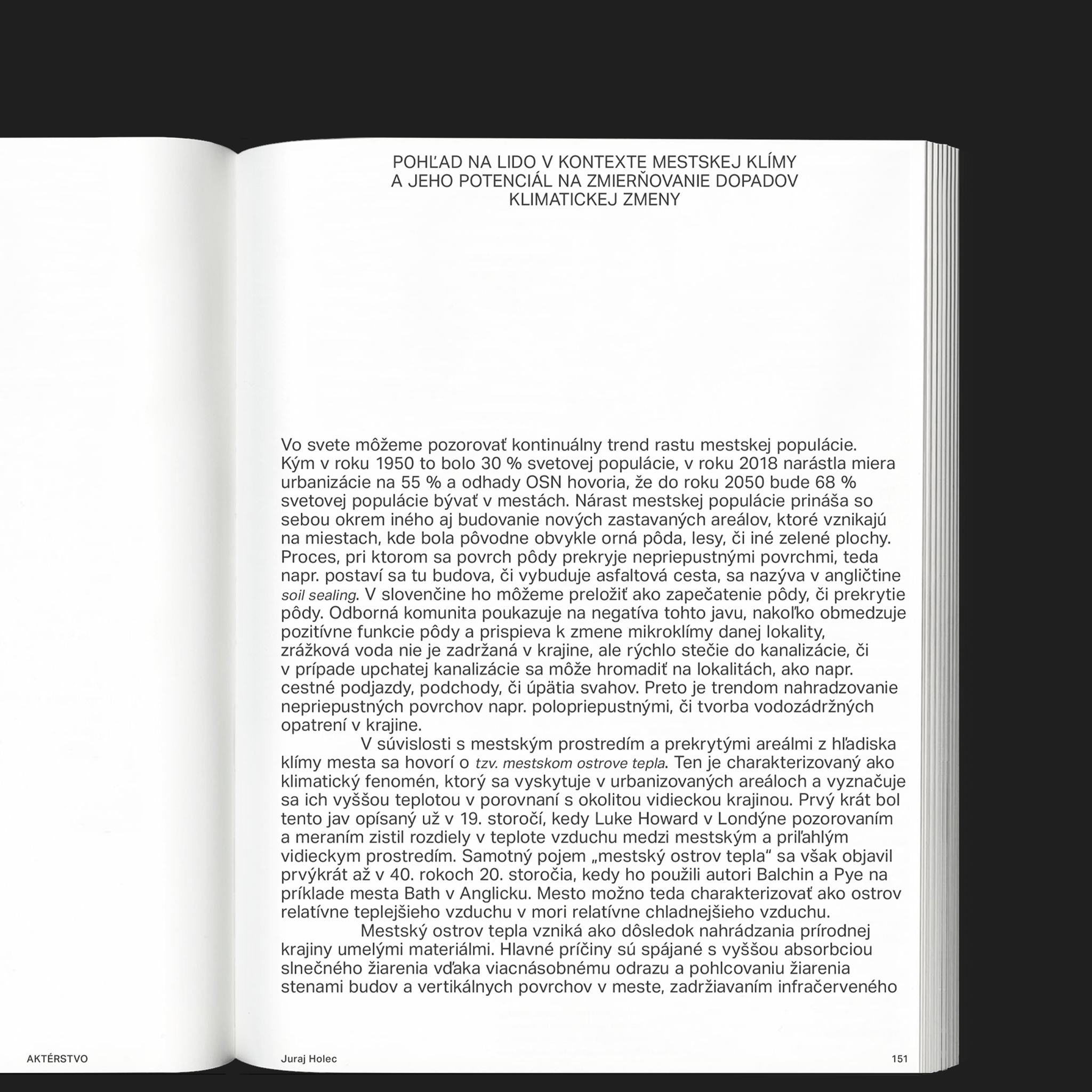 Kniha Mestský rozvoj pre koho? Bratislavské Lido medzi vágnym terénom a expanziou centra, sa usiluje spochybňovať túto „železnú logiku“ a o meste a jeho rozvoji uvažovať inak. Publikácia je výsledkom výskumov a znalostí sedemnástich odborníkov a odborníčok z oblasti prírodných i humanitných vied, ktorí sa venovali podrobným vedeckým výskumom miesta, ale aj analýzam širších bratislavských a globálnych kontextov. Zároveň je aj súborom vizuálnych materiálov, ukazujúcich súčasné i minulé podoby Lida a jeho slobodné umelecké interpretácie.